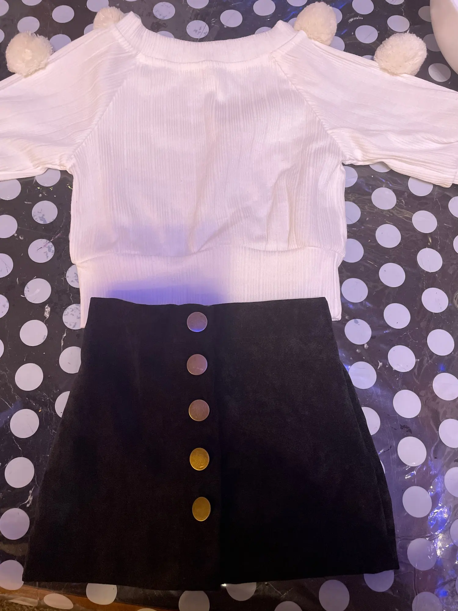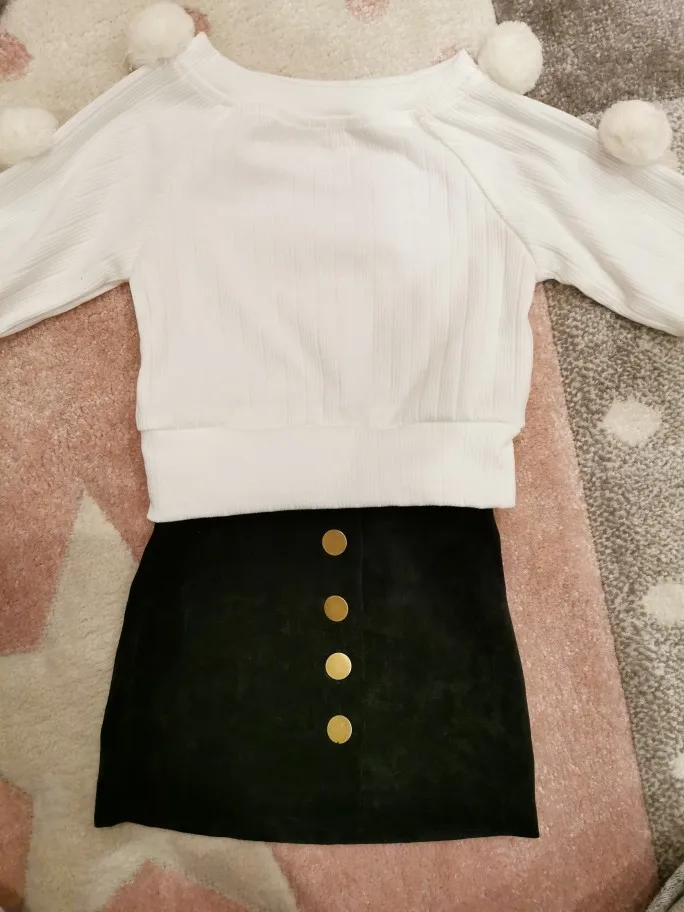 Топ милый, но немного белый и черный, юбка выцветает, если не однотонная черная