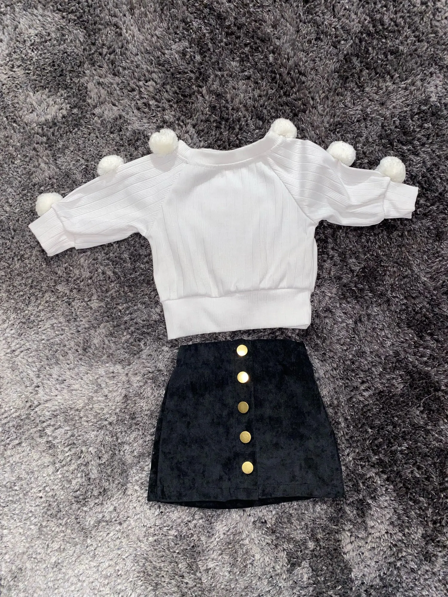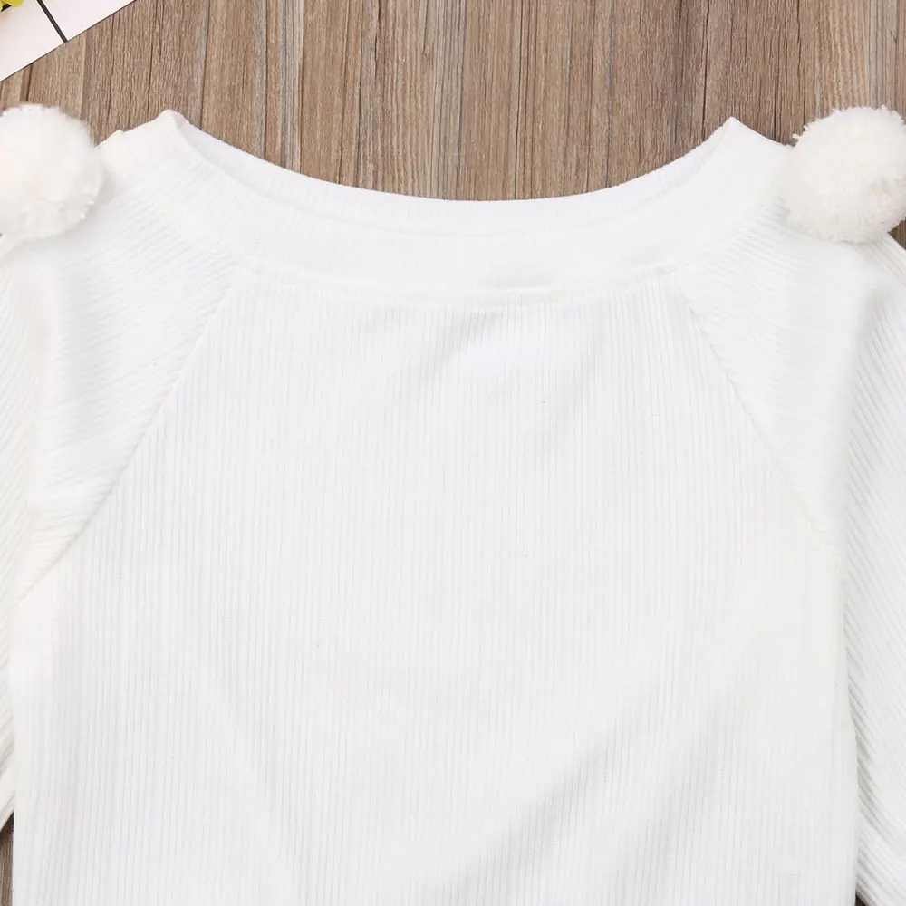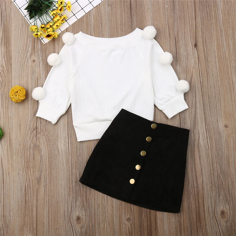 Осенне-зимний комплект одежды для маленьких девочек, белый полосатый свитер с помпонами, однотонная черная юбка, теплый наряд, От 0 до 6 лет