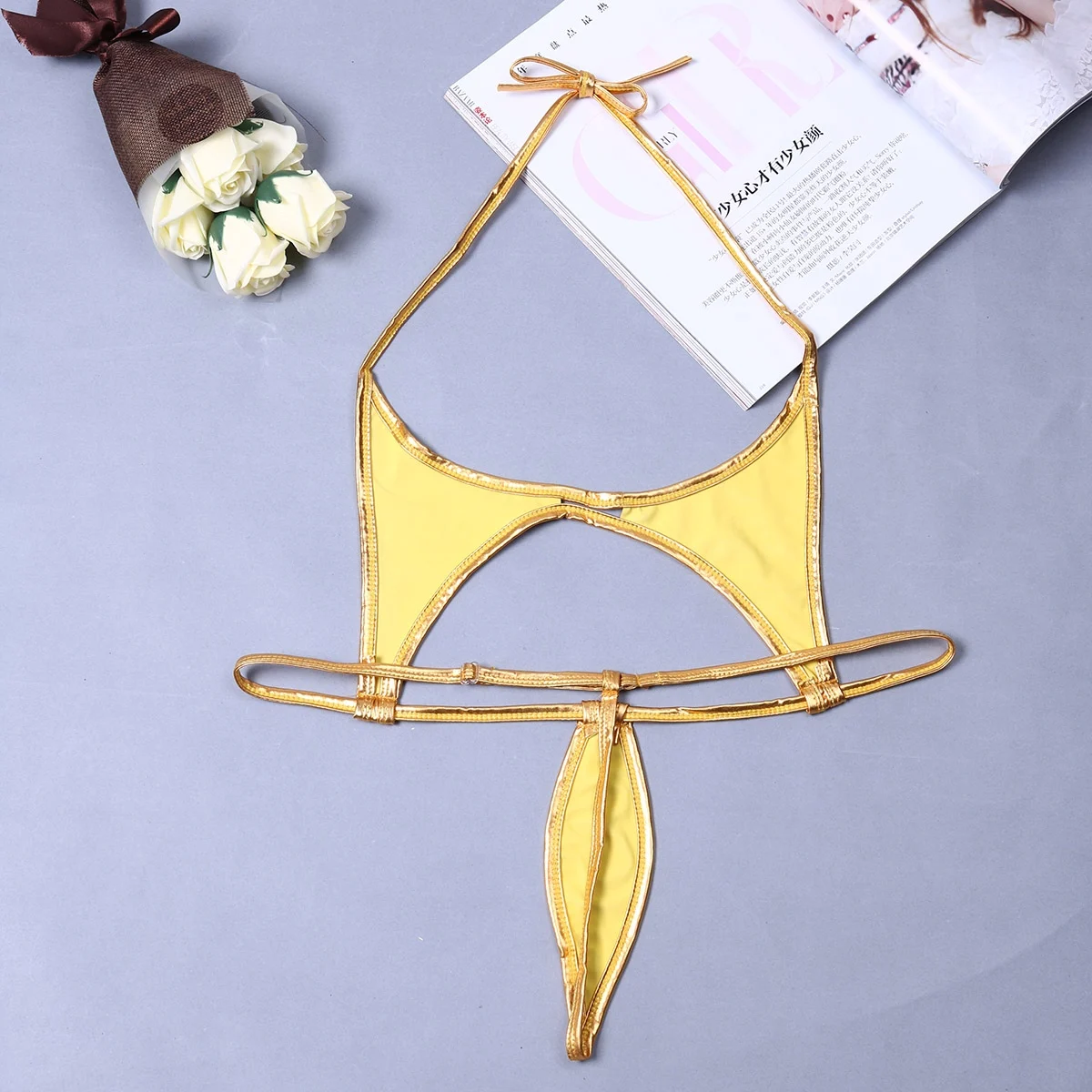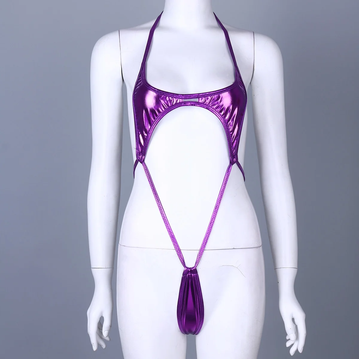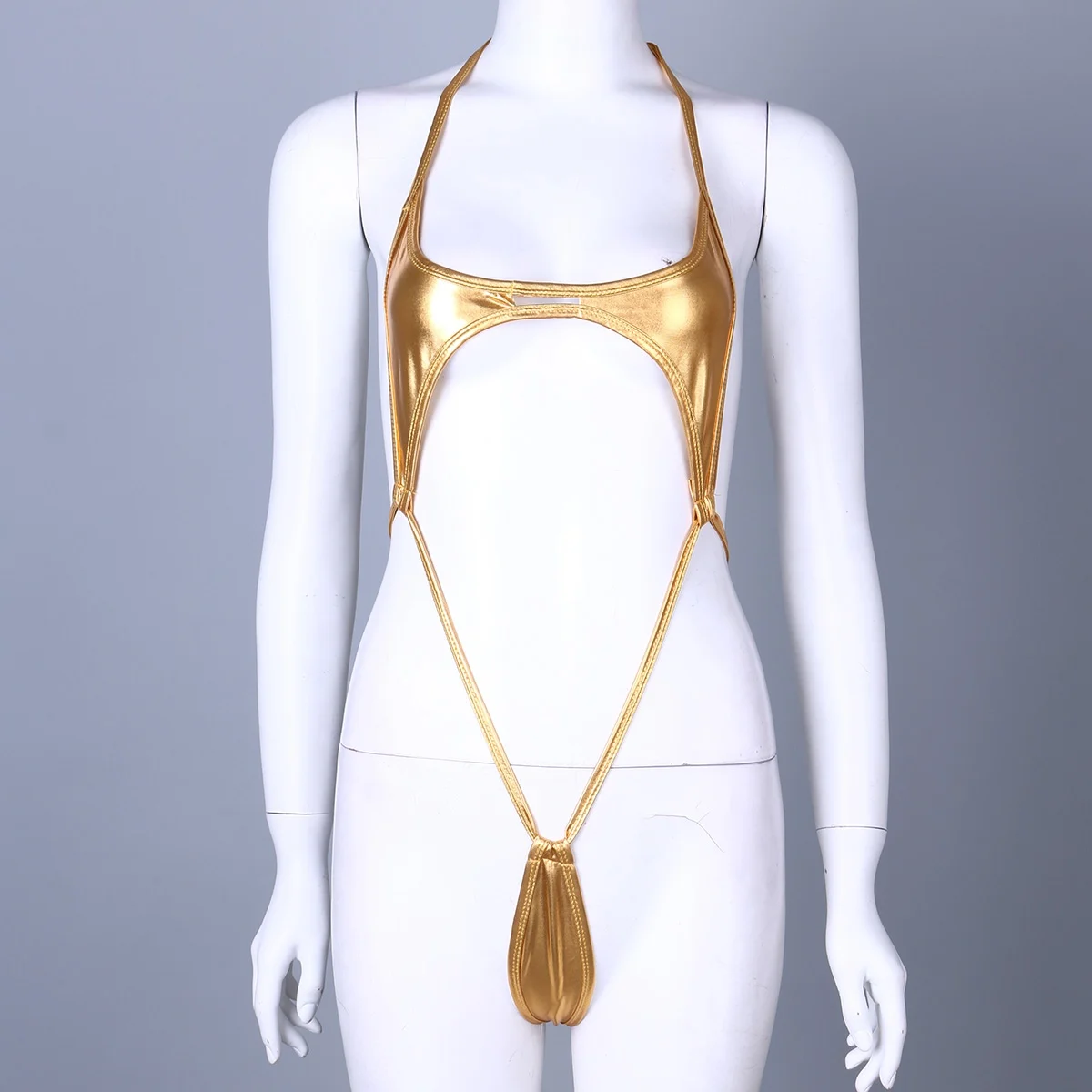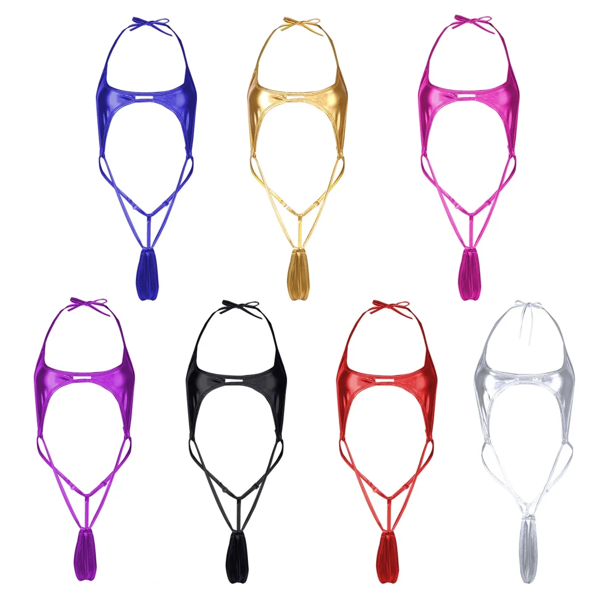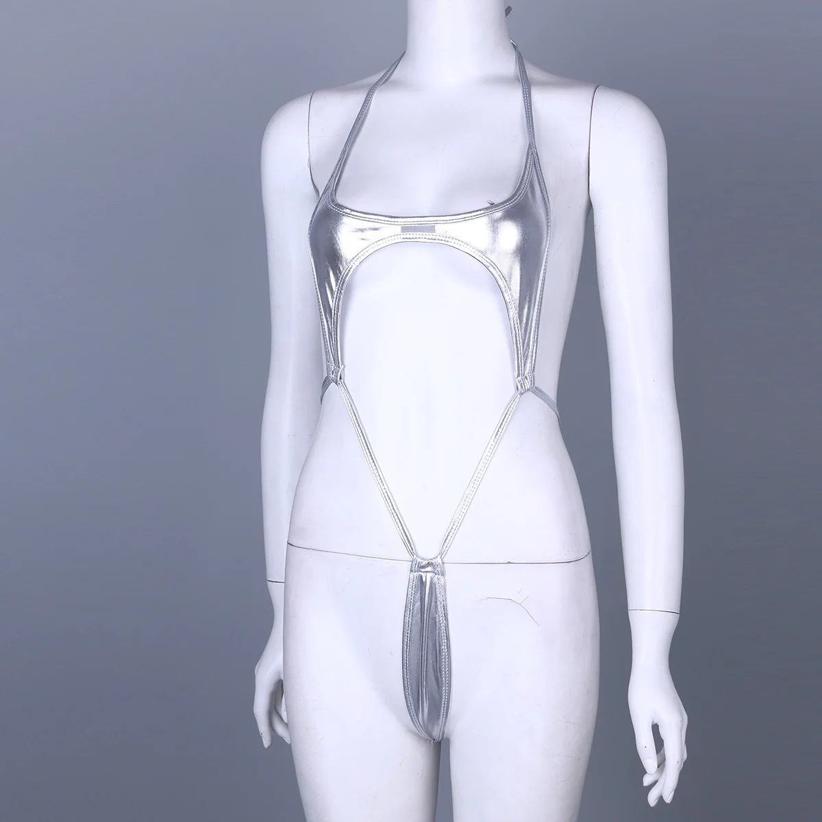 Монокини, бикини 2021, женское нижнее белье, лакированная кожа, халтер, Цельный купальник, сексуальный Тедди, бикини с высоким вырезом, стринги, боди, купальники