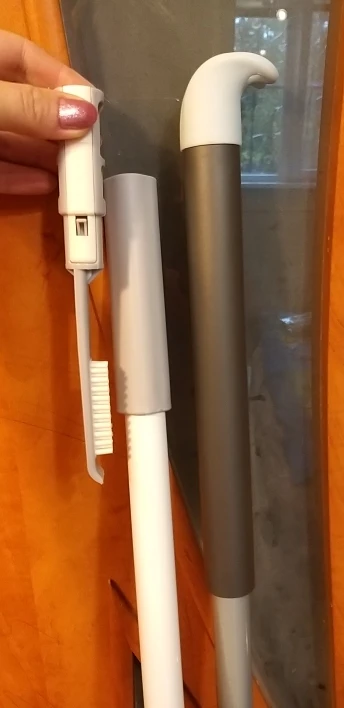 Швабра понравилась, в ручке есть щеточка для отчистки, покупкой доволен! Рекомендую! мой рост 172, длина ручки очень удобная! Конструкция крепкая, отжимать швабру легко!