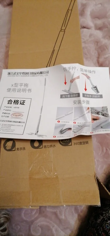 Доставка пять дней, курьер привез к дому. Всё получила в соответствии с заказом. Собирается очень просто. Есть инструкция на китайском, но на картинках всё понятно. Ручка швабры длинная, подойдёт для высоких. Испробовала на ламинате, линолеуме и плитке. Как для меня, так отжим тряпки достаточный. В ручке швабры есть щёточка для очистки тряпки. Продавцу спасибо. Теперь полы можно мыть без перчаток))). Надеюсь, что швабра прослужит долго.