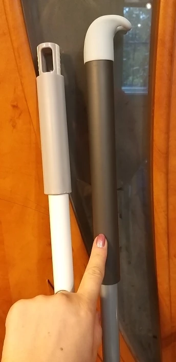 Я искала легко отжимаемую швабру, потому что стандартные уже меня не устраивали, а хотелось, чтобы можно было убрать каждый уголок и не ползать с тряпкой по полу))) Вот и нашла)) Длины как раз под мой рост (163,5), не приходится наклоняться или наоборот еле удерживать швабру. Ручка в самый раз. Плюс, не скользит в перчатках. Собственно, отжимается она отлично! Также в я сразу заказала 2 запасные насадки. Цвет - приятный. А самое классное - я сделала заказ из России и посылку доставили до двери уже через 2 (!!!) дня :) Это очень круто! В общем, я довольна.