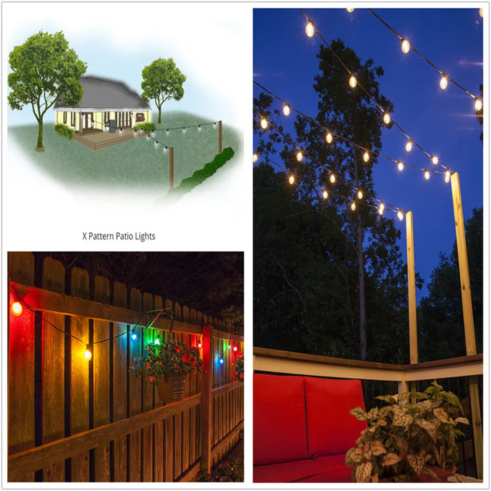 Светодиодный светильник G40 с разноцветными лампочками, Круглый струнный светильник s 25 футов, 25 шт., водостойкая лампа для двора, вечерние светильник, лампы для свадьбы, дома, сада, декора