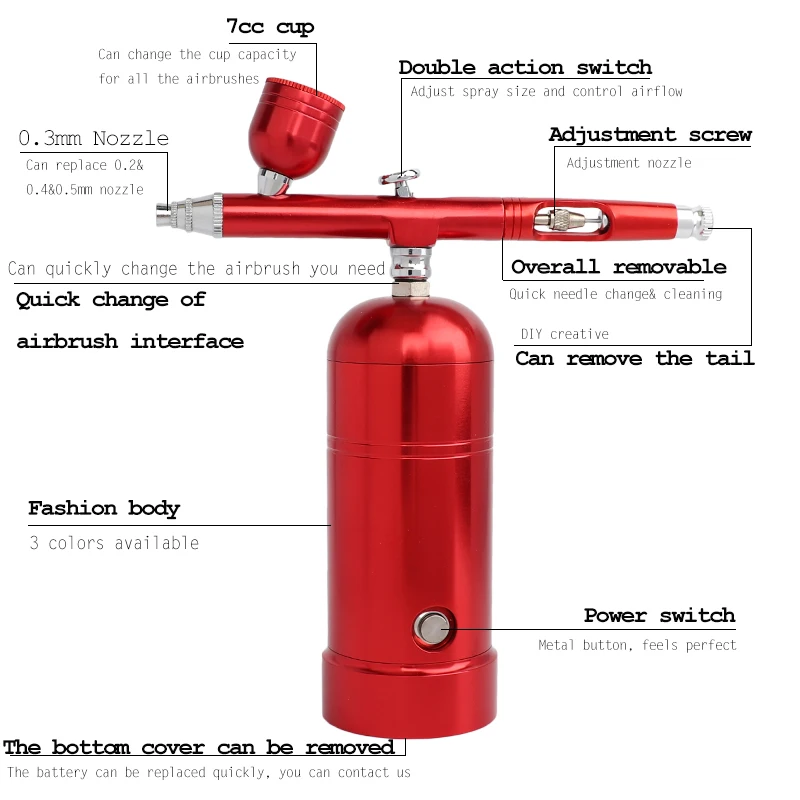 Беспроводной воздушный компрессор Onnfang, Портативный Аэрограф 0,3, 0,2 и 0,5 мм, распылитель для макияжа, украшения для тела, торта, модель автомобиля