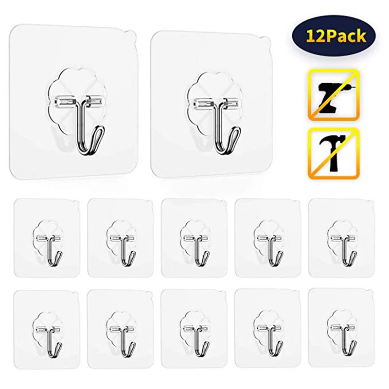 12 шт., крепкие бесшовные крючки, водонепроницаемая прозрачная настенная наклейка, вешалка, клеевой стеллаж для хранения с крючком, Бесплатная Пробивка, кухонный инструмент для ванной комнаты