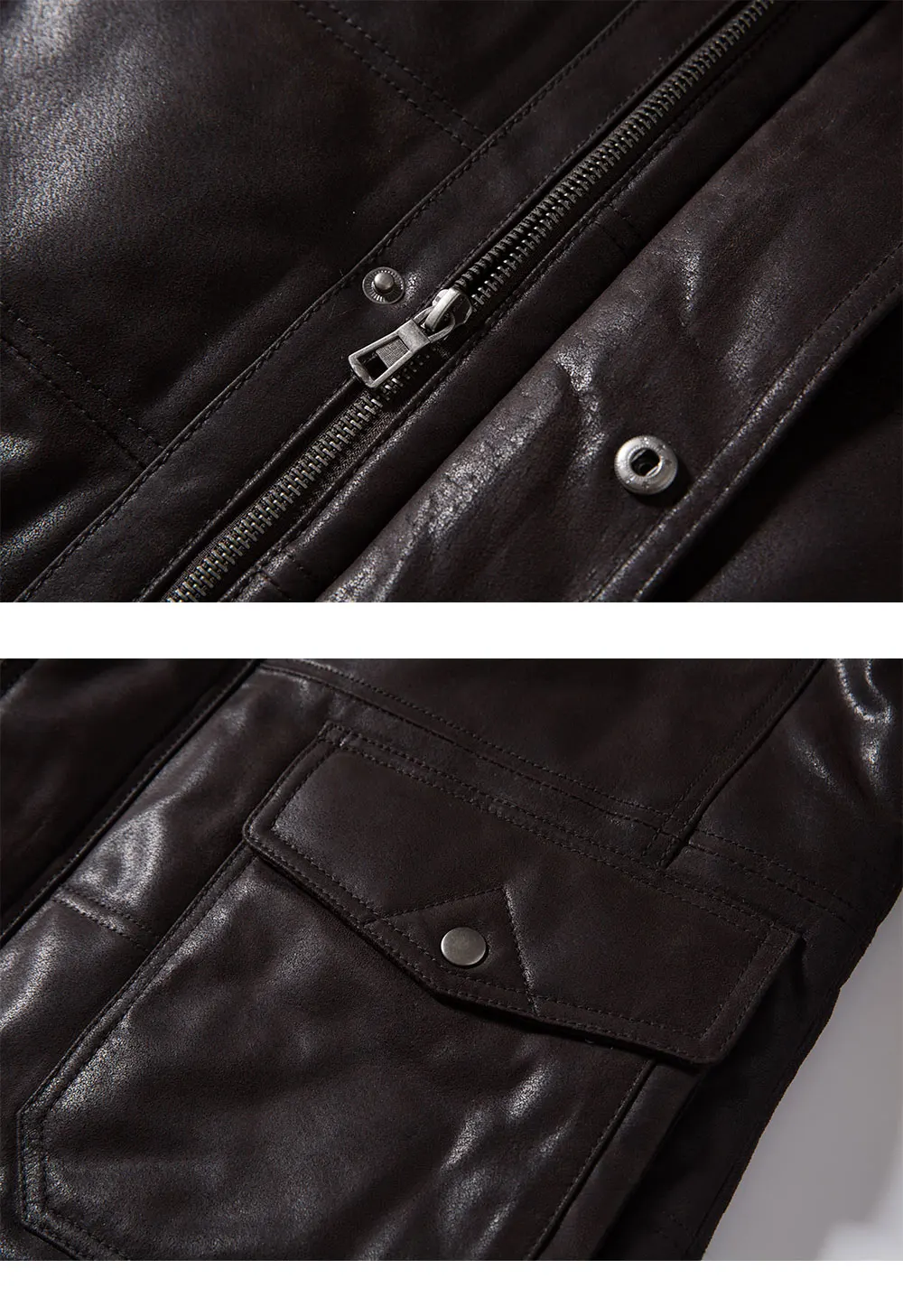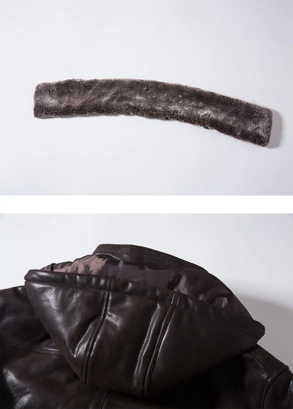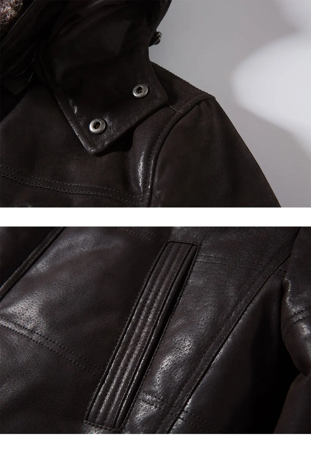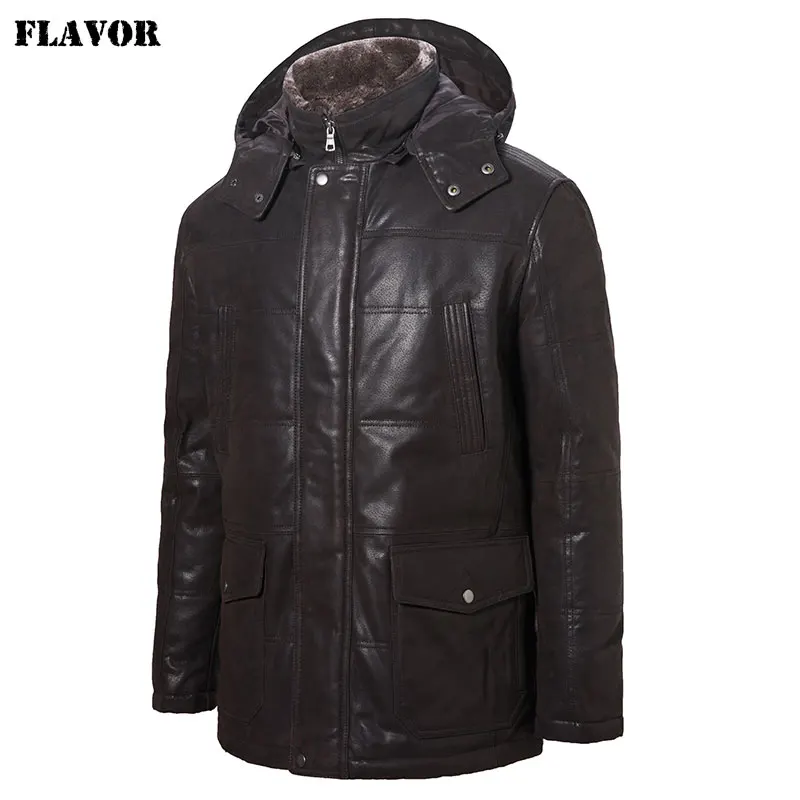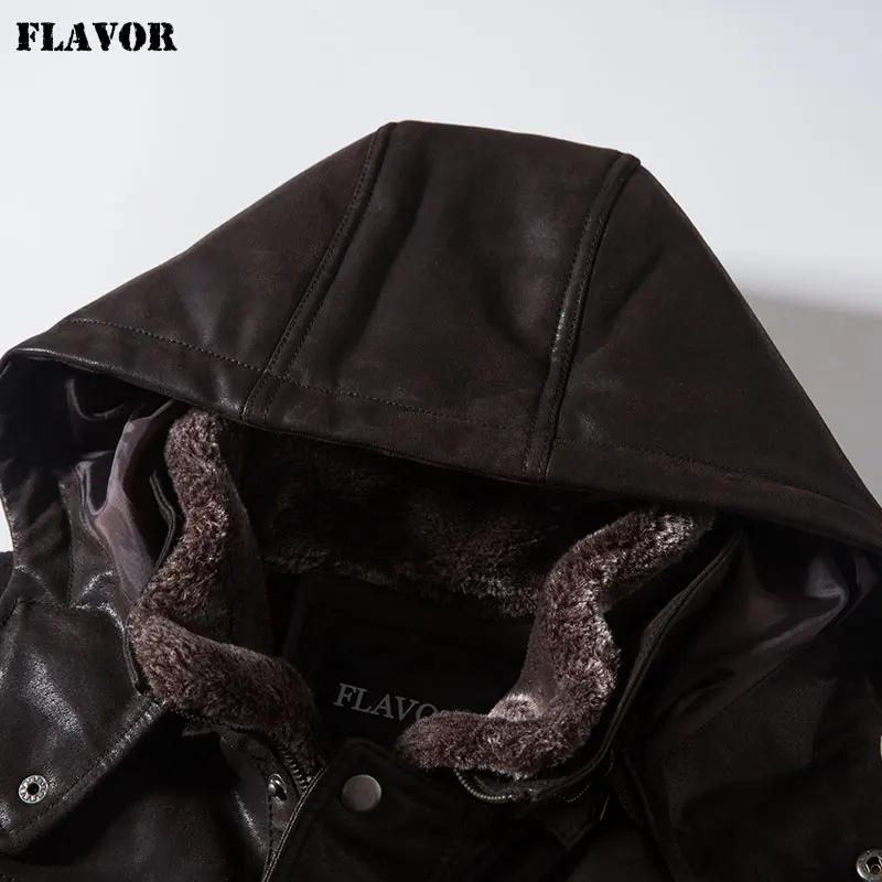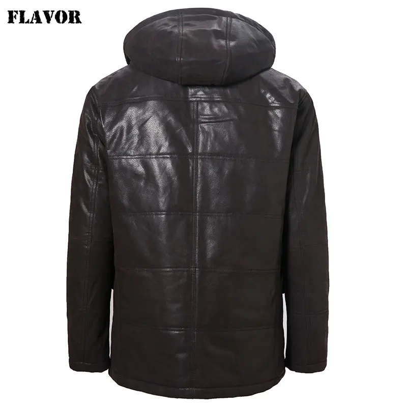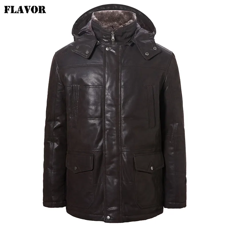 Мужская куртка из свиной шкуры FLAVOR, куртка из натуральной кожи со съемным утеплителем, для зимы, с меховым капюшоном-воротником