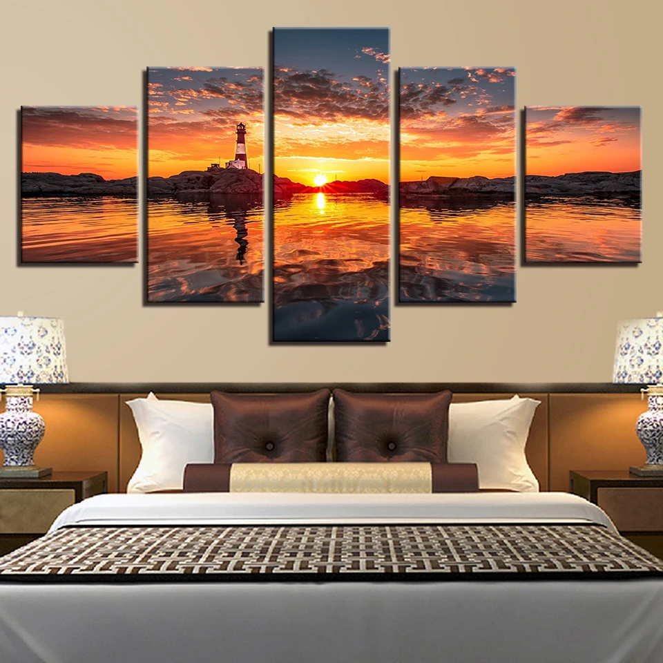 Пейзаж, море, пляж, океан, восход, маяк, тропический, 5 шт., настенные фотографии для гостиной, цветная живопись, искусство, домашний декор