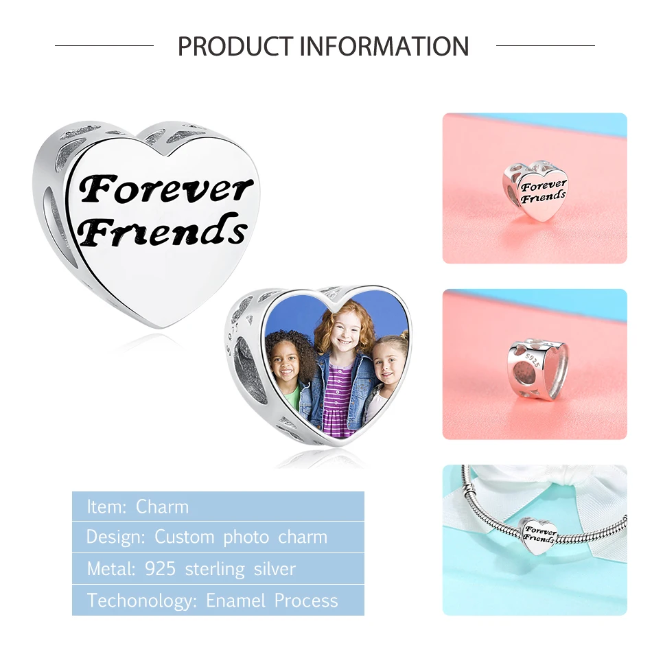 2019 простой браслет из стерлингового серебра 925 пробы Love Forever Friends, персонализированное фото бусы, ожерелье, персонализированные украшения