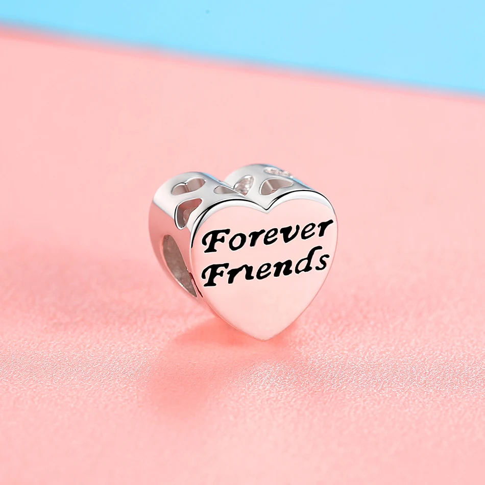 100% 925 пробы серебро очарование бисера Друзья Навсегда Сердце из ...