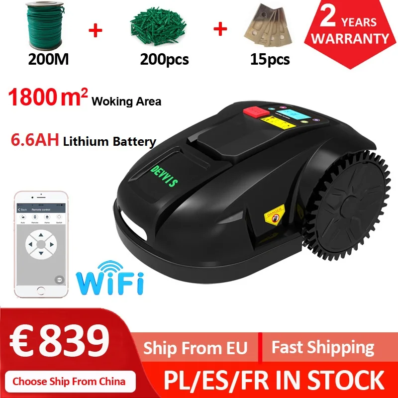 Двухлетняя гарантия-Европа склад сад DEVVIS газонокосилка беспроводной автоматический робот E1800T с 6.6ah литиевая батарея, Рабочая мощность 1800m2
