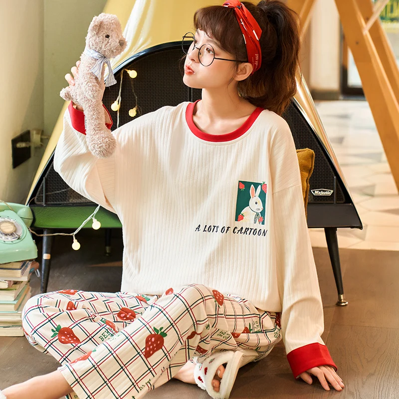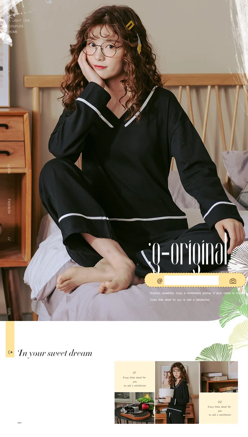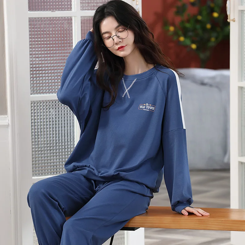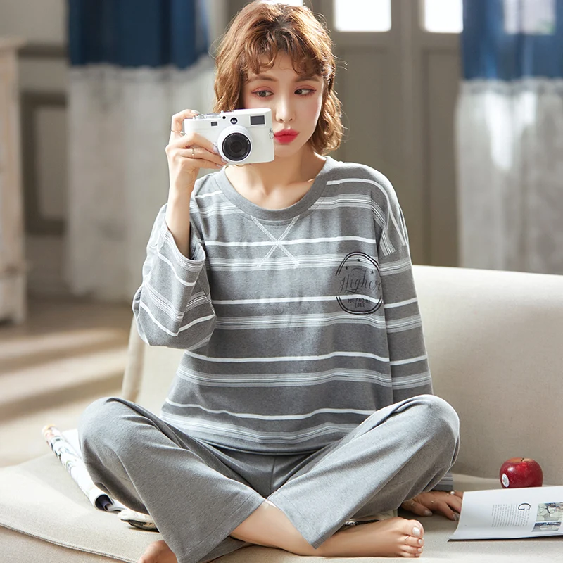 Пижама женская хлопковая, с длинным рукавом и V-образным вырезом