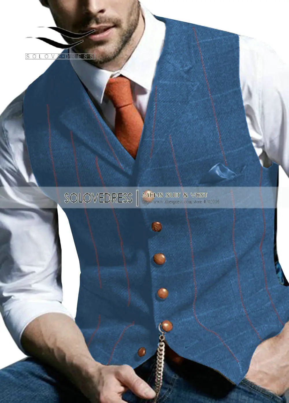 Жилет мужской шерстяной в клетку, повседневный приталенный, с заостренным воротником и V-образным вырезом, для свадьбы, для жениха, в елочку, коричневый