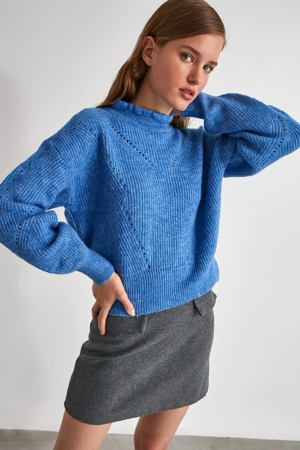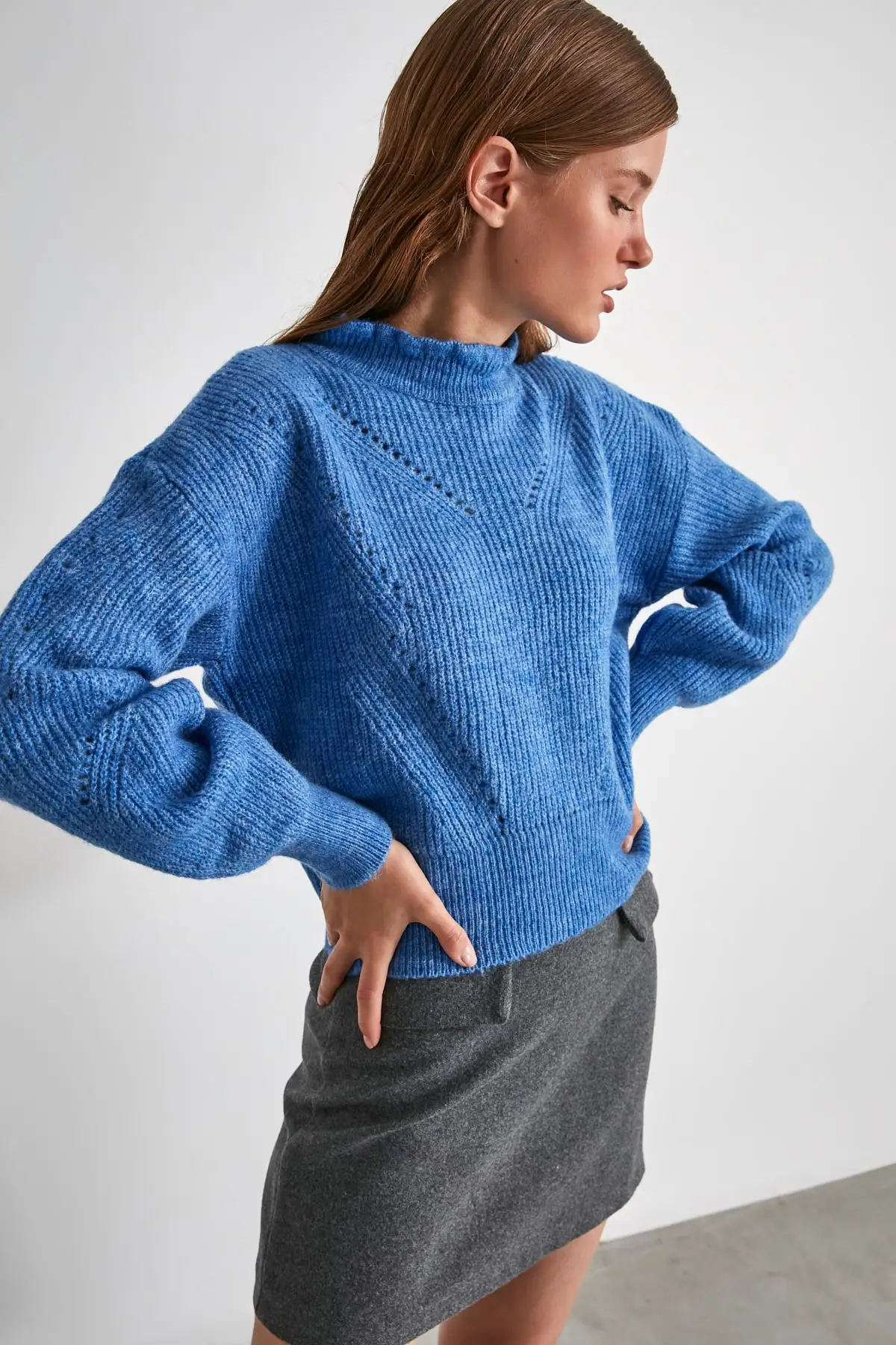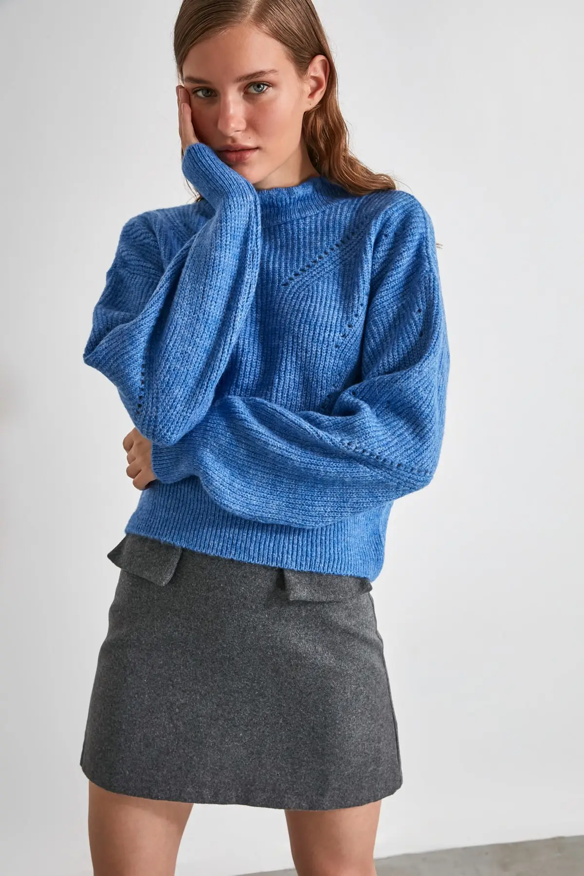 Синий ажурный вязаный свитер TWOAW20KZ0038