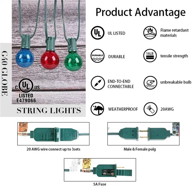 Патио светильник s G40 глобус вечерние Рождество струнный светильник водонепроницаемый с несколькими цветами Для Декоративного наружного двора Свадебный светильник