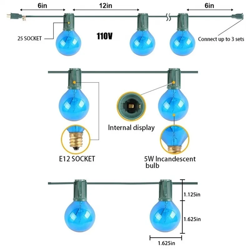 Гирлянда G40 25 футов с круглыми лампочками для внутреннего дворика...