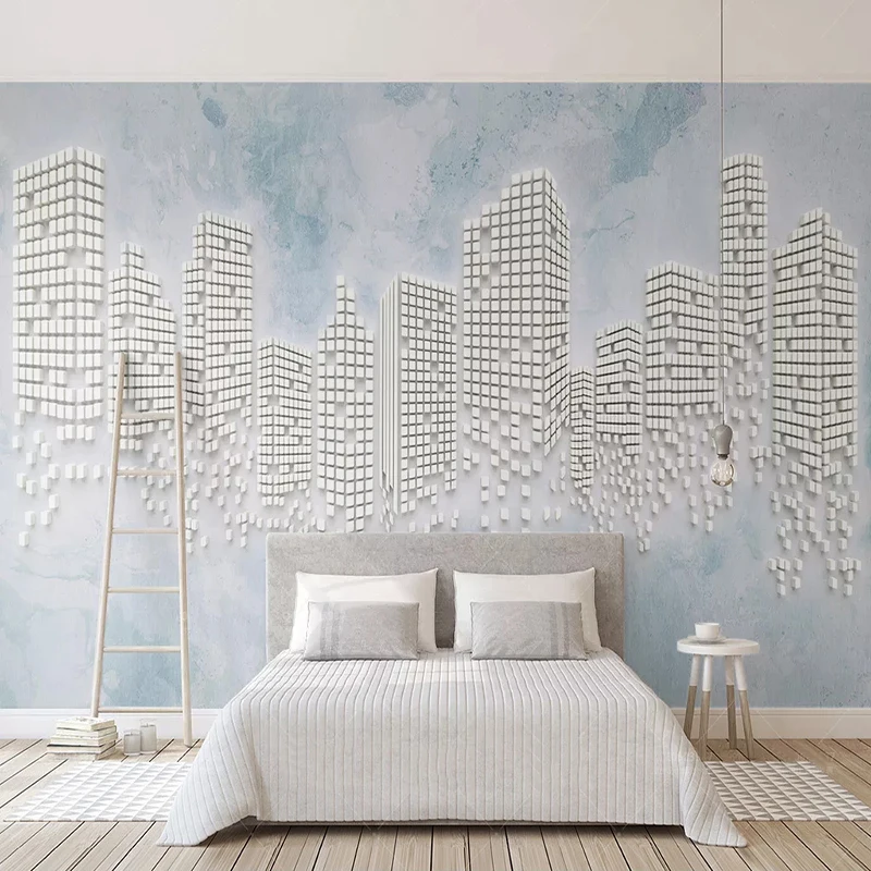 Настенные 3D-обои любого размера на заказ, стерео Белая Квадратная мозаика, абстрактная городская Наклейка на стену, для гостиной, спальни, постер для домашнего декора