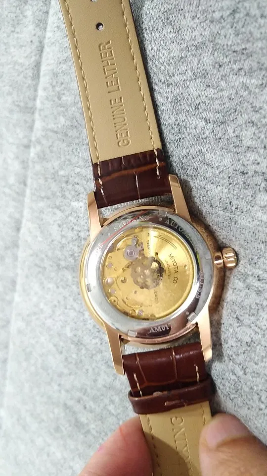 Nice watch! Very beautiful and Miyota movement works smoothly. Like a lot of people mentioned, the strap is rather poor quality. However, it is perfectly fine at this price point, and it does not really matter, as it is very easy to replace. I will provide more comments in a few days. So far so good ;).
