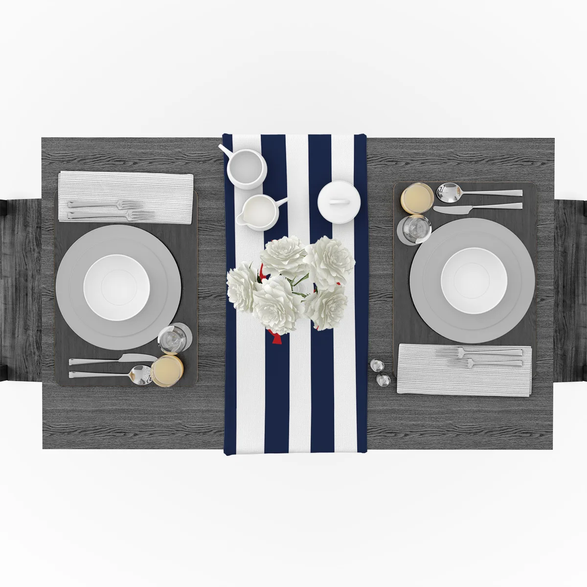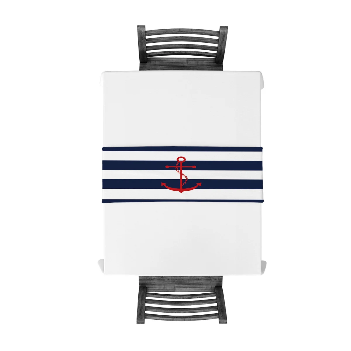 Простая скатерть в сине-белую полоску с якорем, длинная винтажная скатерть для свадебной вечеринки