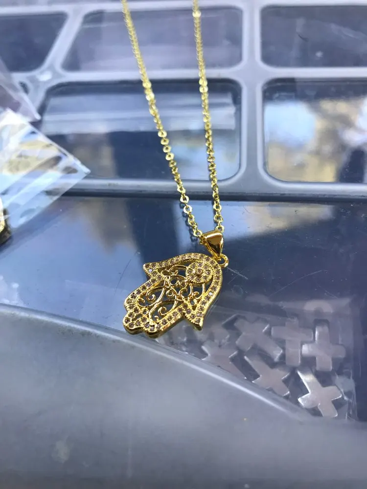 Juya новый дизайн, модное ожерелье с подвеской в виде хамсы, рука Фатимы, золоторозовое золото, для женщин и мужчин, модные ювелирные украшения в турецком стиле, оптовая продажа