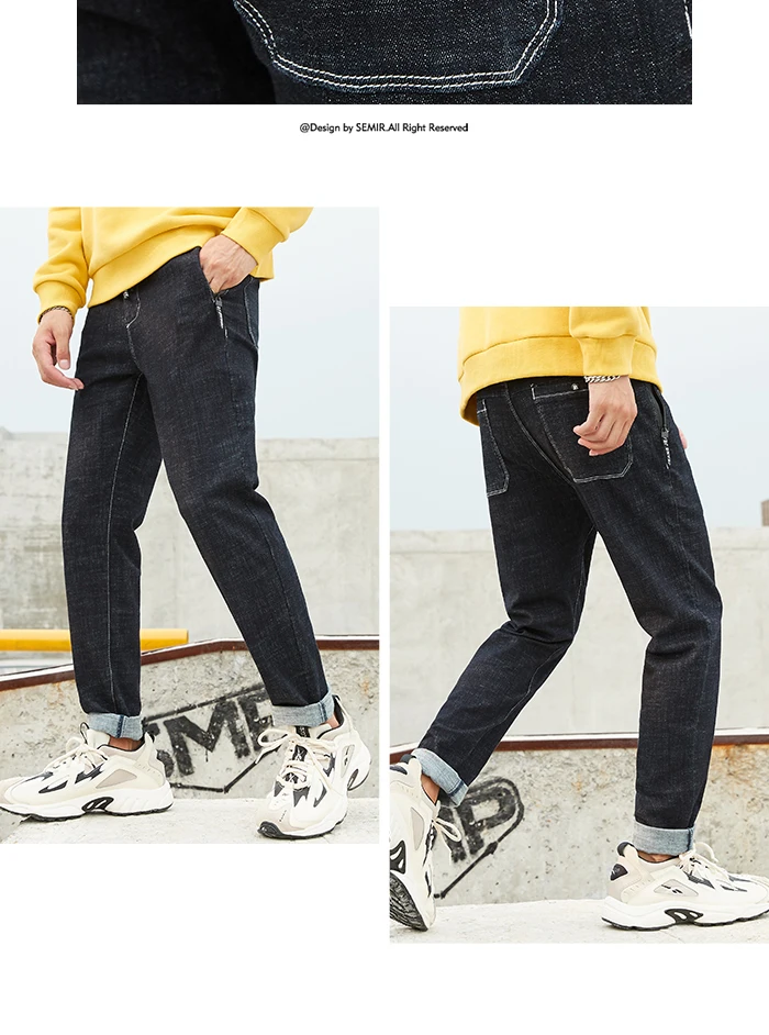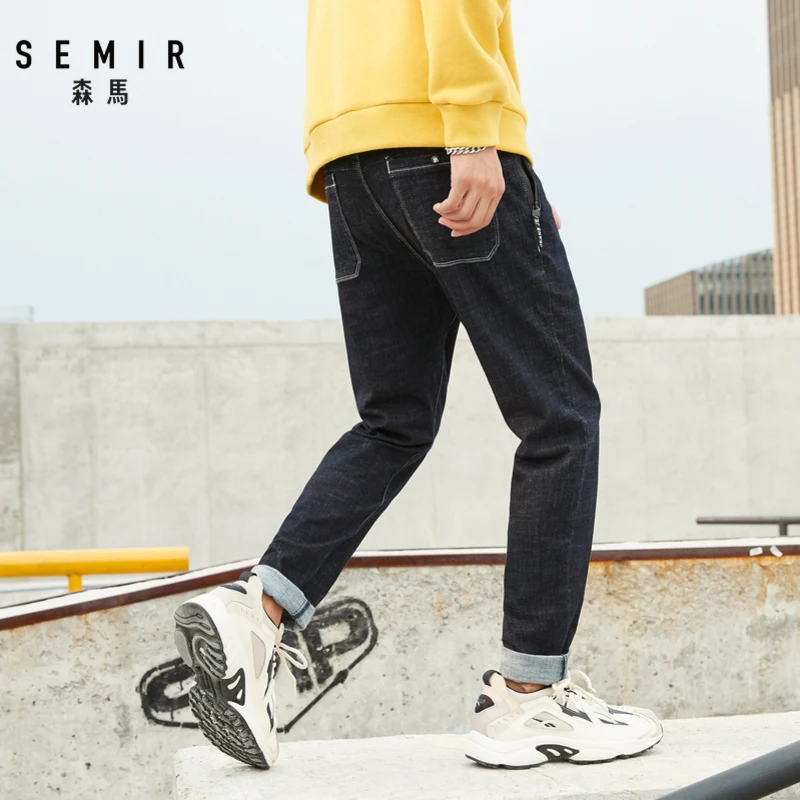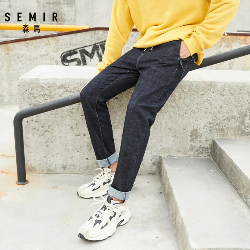 Мужские джинсы в стиле Харадзюку Semir, винтажные брюки с эластичным поясом в Корейском стиле на осень и зиму