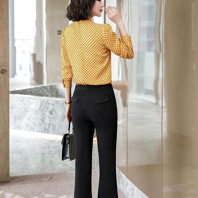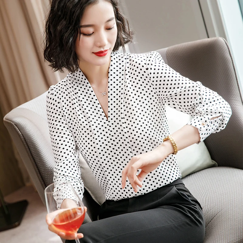 Женская шифоновая рубашка Lenshin, в горошек, свободная, дышащая, мягкая, с V-образным вырезом, драпированная, повседневная, офисная