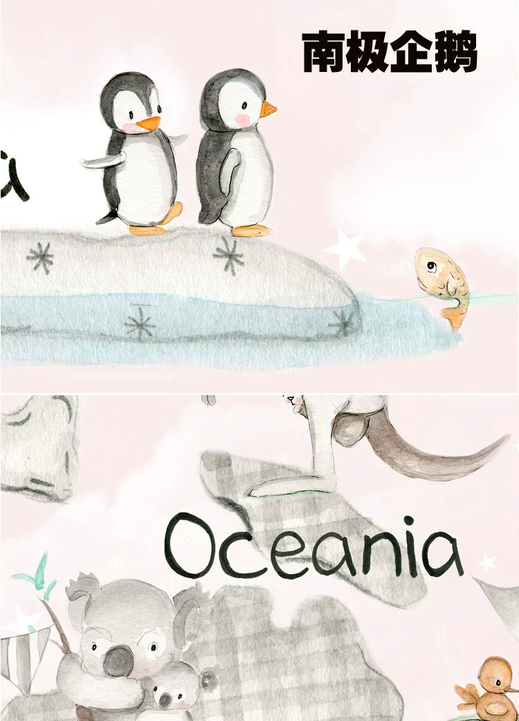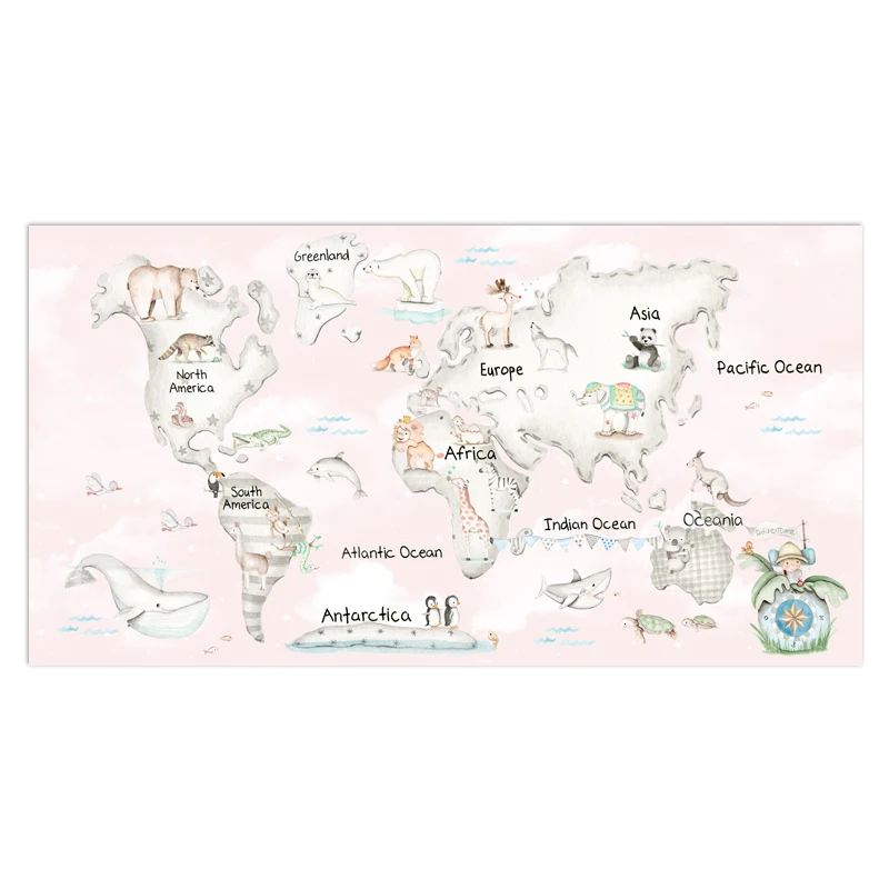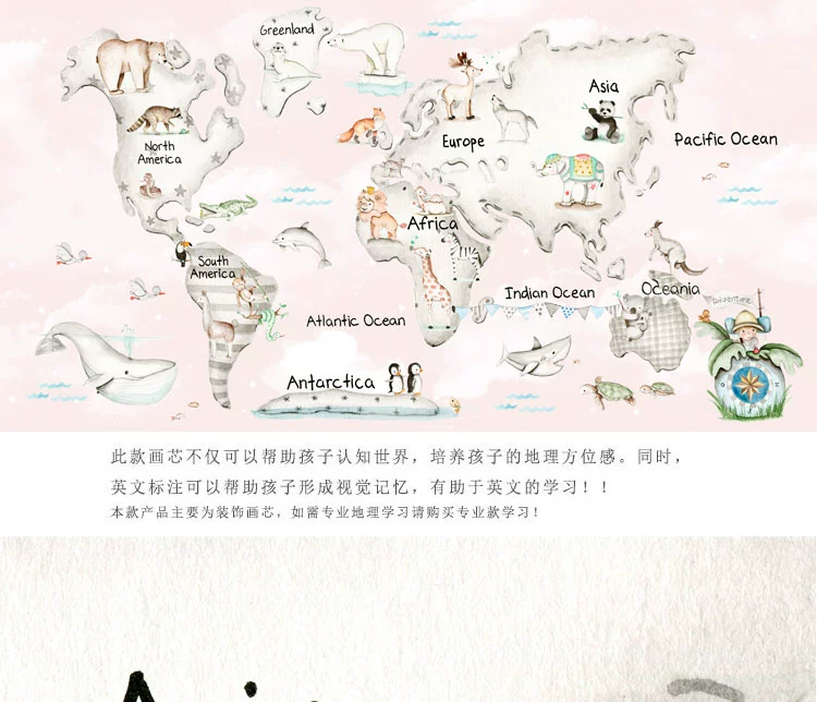 Красочная картонная карта мира с животными, плакат, размер, настенное украшение, большая карта мира 100x52 см, водонепроницаемая холщовая карта