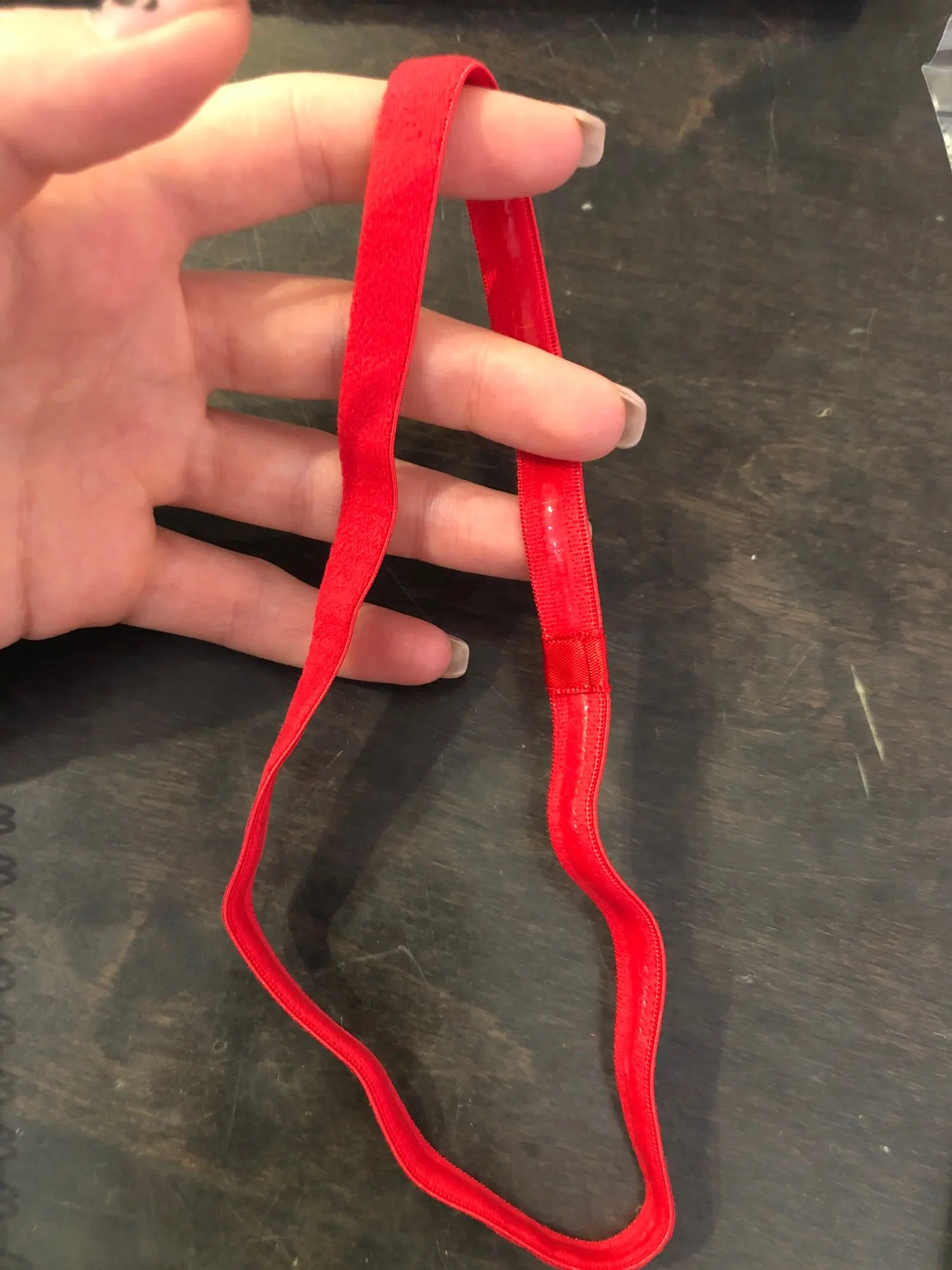 Отлично! :) прочная повязка на голову с силиконовым покрытием, сверху! Доставка была soooo longgggg