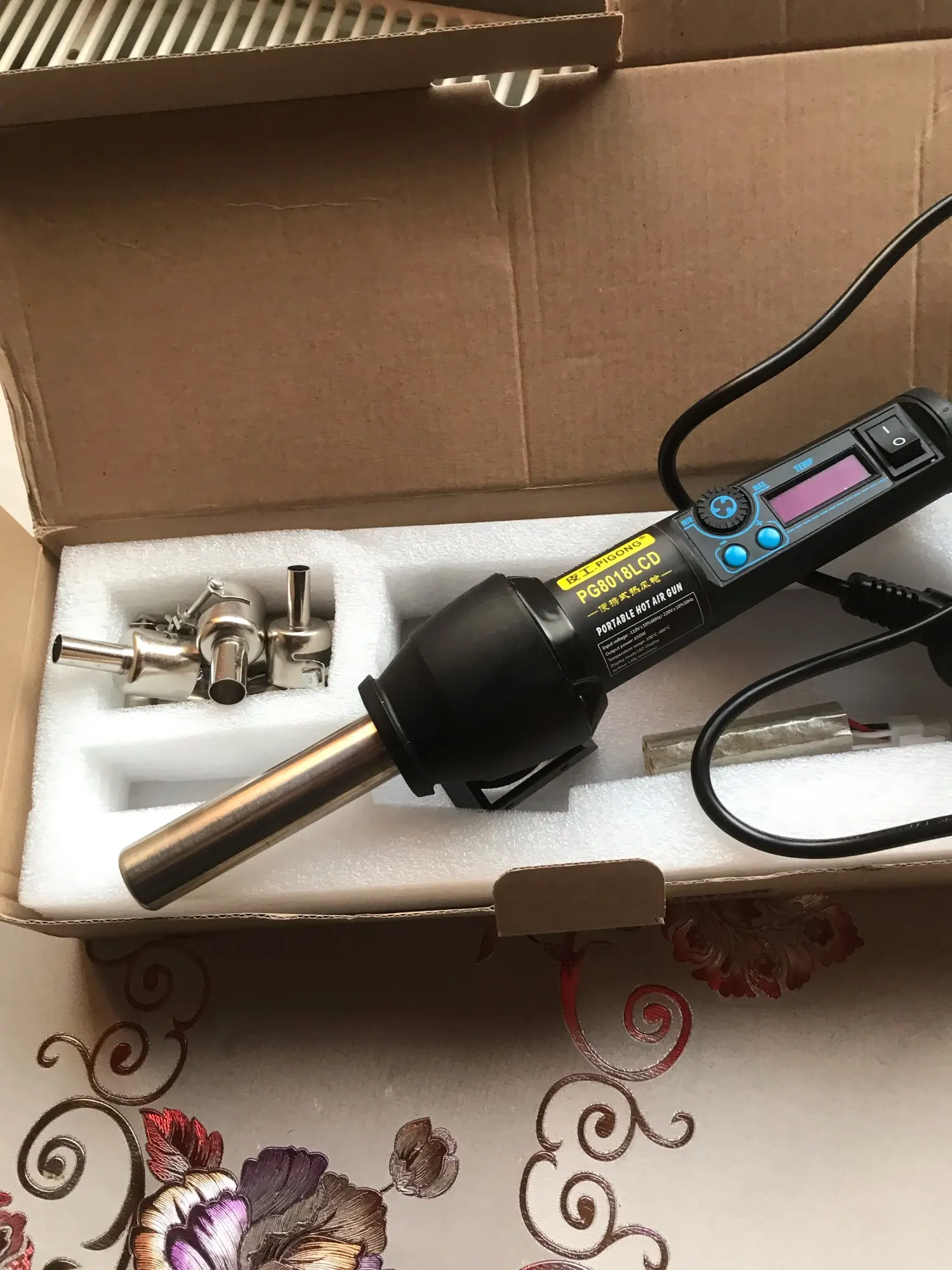 Тепловой пистолет больше, чем я думал, он выглядит и кажется крепким и хорошим качеством, поставляется со всеми аксессуарами, как описано, вентилятор действительно шумный, но для меня это не проблема. Протестированная конструкция 2 mosfets материнской платы ПК, они возникли без проблем при максимальной температуре 480 °C. Я надеюсь, что долговечность будет хорошей.