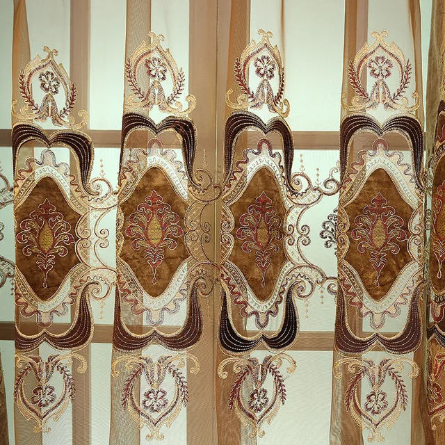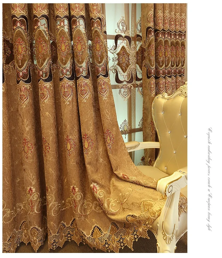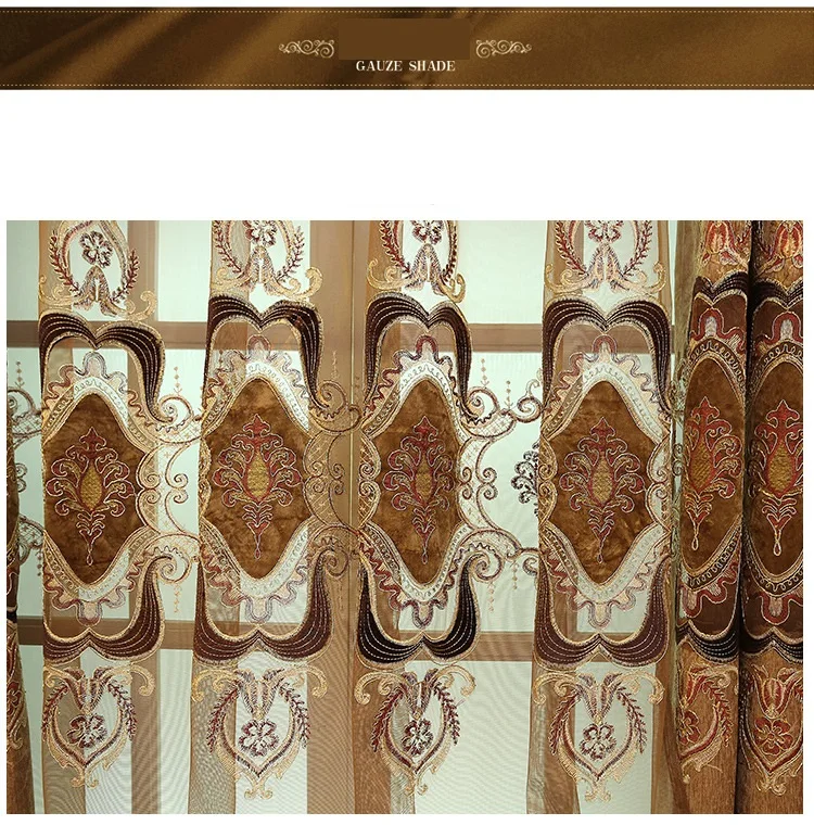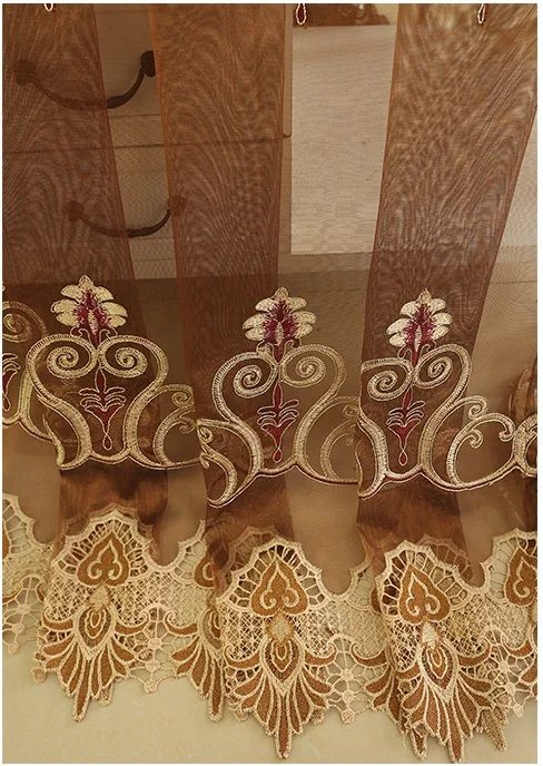 Шторы кофейного цвета в европейском стиле с вышивкой, для гостиной,...