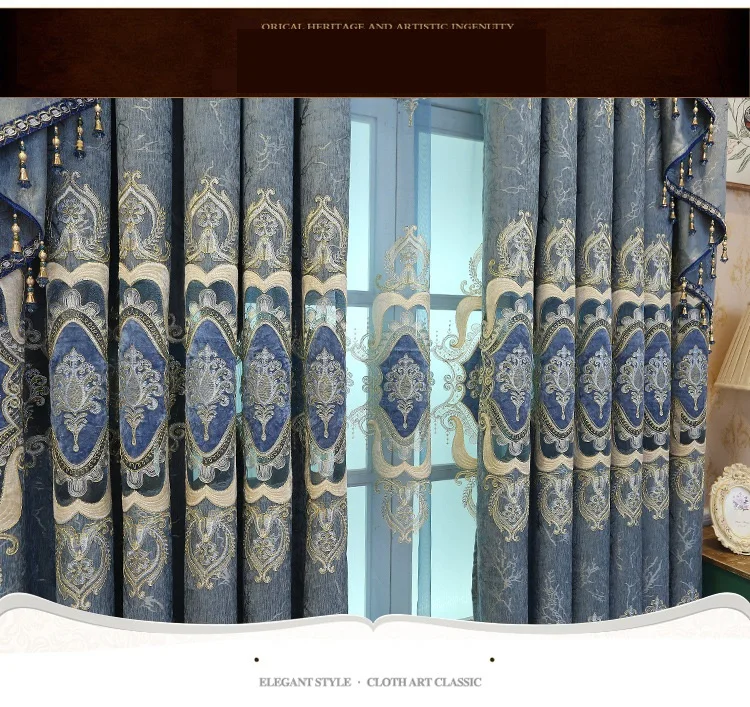 Занавески на заказ, неоклассические европейские Синие Роскошные одн...