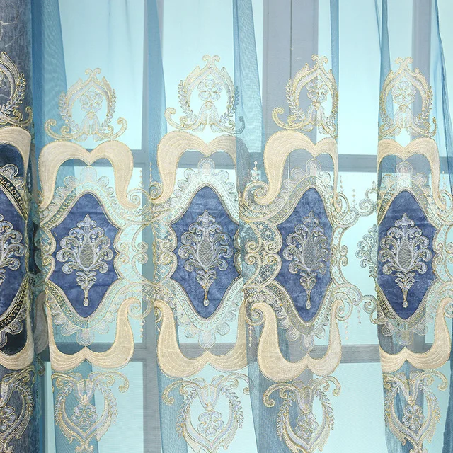 Европейские Синие королевские роскошные шторы для спальни кофейные ...