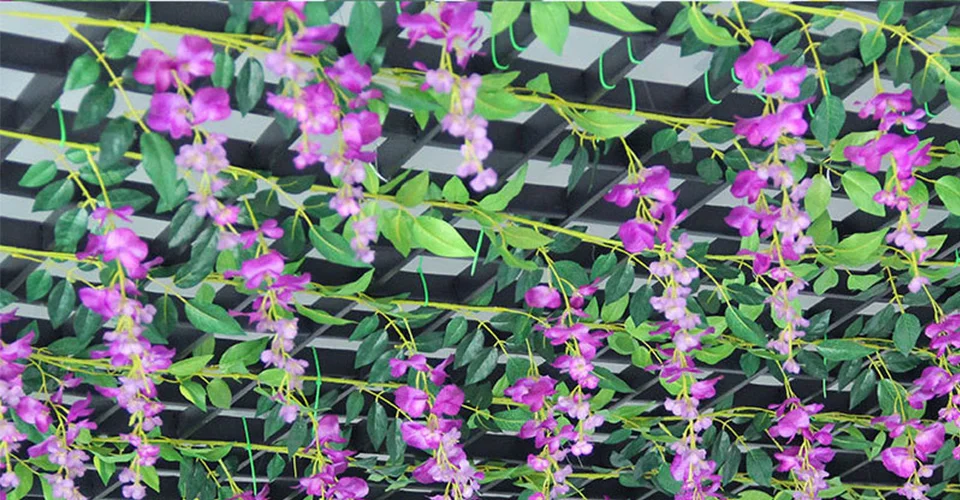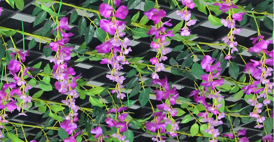 Цветы глицинии, 180 см, венок из виноградных листьев, листва ротанг...