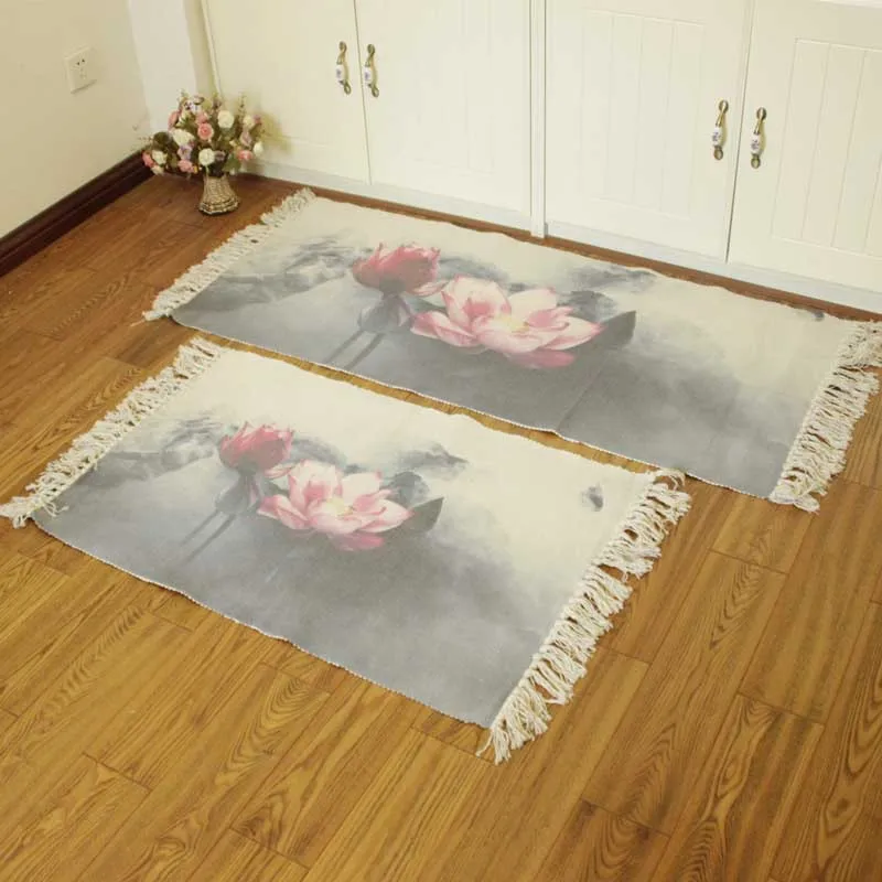 Тканый ковер из хлопка и льна с кисточками, напольный коврик, дверн...