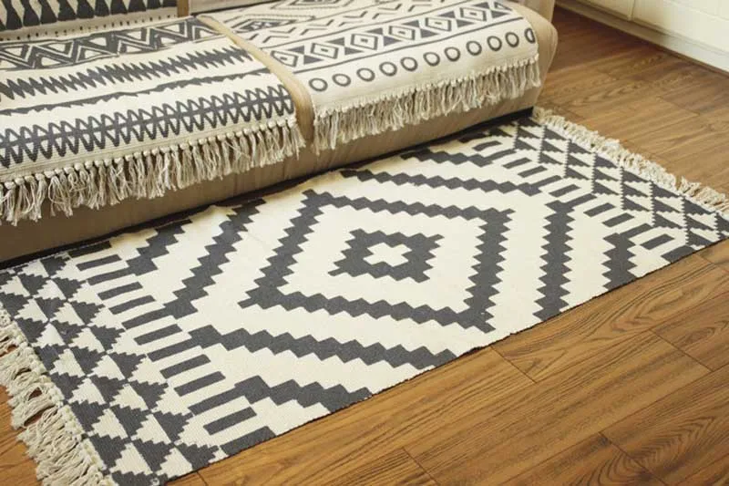 Черно-белый Хлопковый тканый ковер для гостинойспальникухниприхожей...
