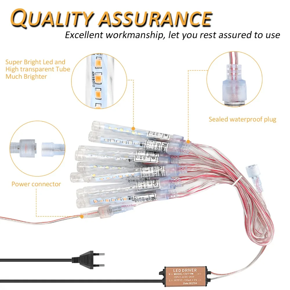 10 трубок 10 см водонепроницаемый метеоритный дождь трубки светодиодный светильник AC85-220V вилка ЕССША Рождественский свет свадебное украшение сада