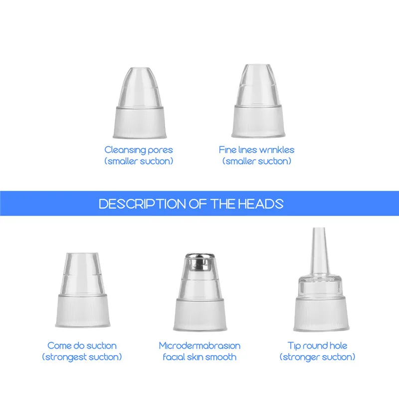 Сильное всасывание, сила всасывания регулируется, эффективно высасывает черные точки из носа и акне. Мощность всасывания больше, чем у традиционной машины для всасывания черных точек.