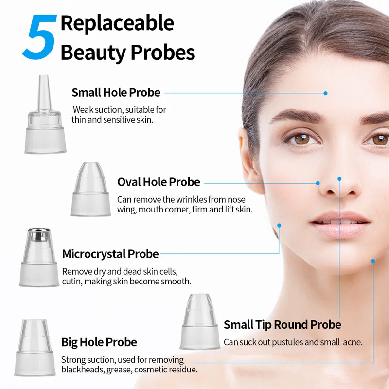 Модернизированный дизайн: Устройство для удаления черных точек последнего поколенияБолее сильное всасывание и более глубокое очищение кожи.После тестов, проведенных более чем 1000 пользователями, Этот пылесос для угрей можетЭффективно удаляет черные точки, белые точки, омертвевшую кожу, жир и остатки макияжа, разглаживает морщины и подтягивает кожуПосле непрерывного использования в течение 2 - 5 недель. Качество гарантировано.