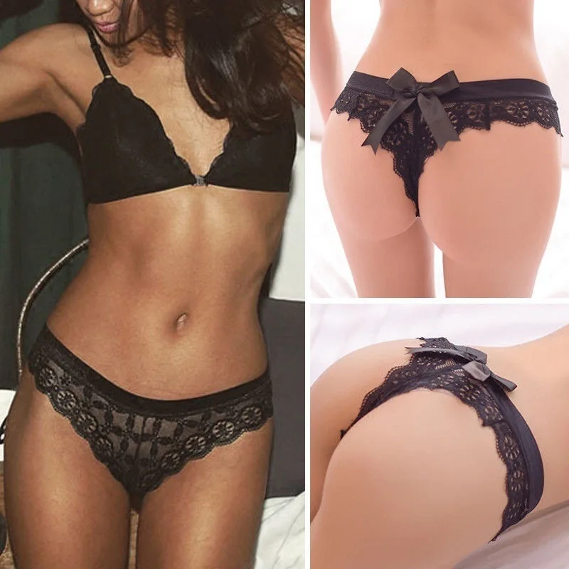 Трусики-стринги женские, с вырезами, сексуальный кружевной с бантом, с бантом, экзотическое дышащее нижнее белье, стринги женские трусики