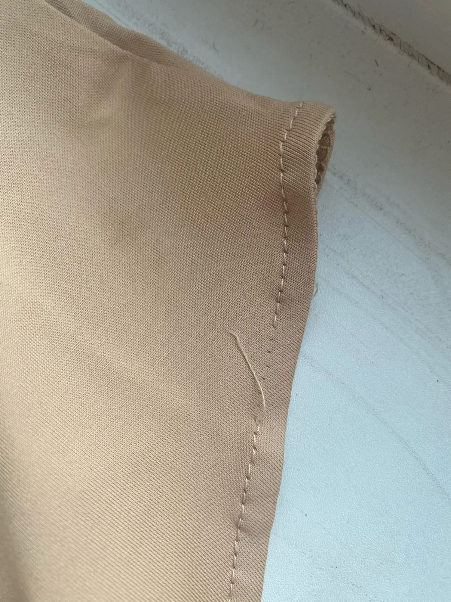 Ну такое. Два раза надеть и выкинуть. Прямо очень тонкая ткань. Не понятно зачем двойная ткань до середины с двух сторон, из-за этого на спине видно край подклада. Нитки торчат везде. Померила один раз, уже шов порвался в середине. В принципе как на фото, но я не ожидала, что ткань настолько тонкая и прозрачная. Смотрится неплохо, если них с завышенной талией. Но снизу на меня вообще не село, в ширину больше меня намного. Муж сказал в таком по улице не ходят )) сильно прозрачное.
