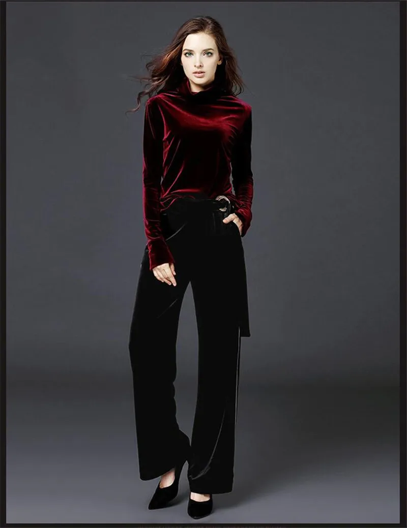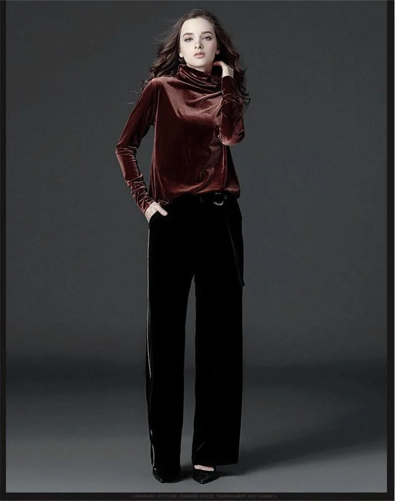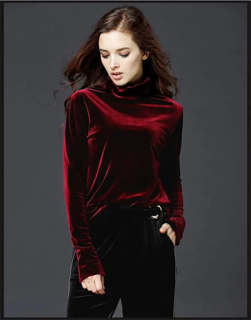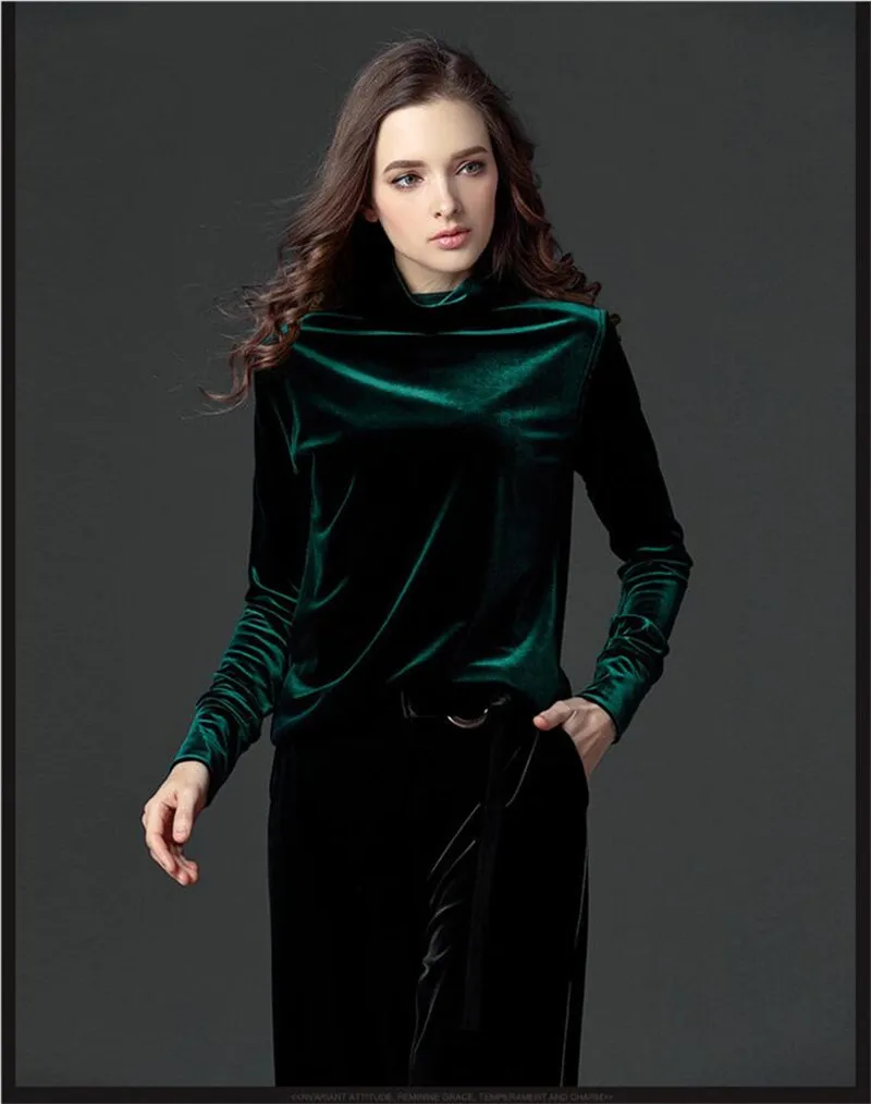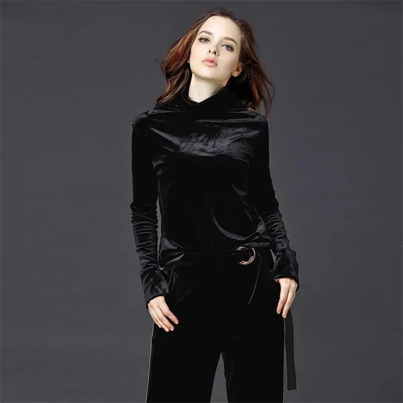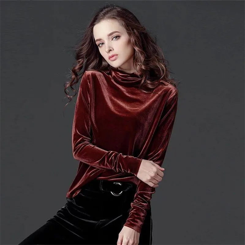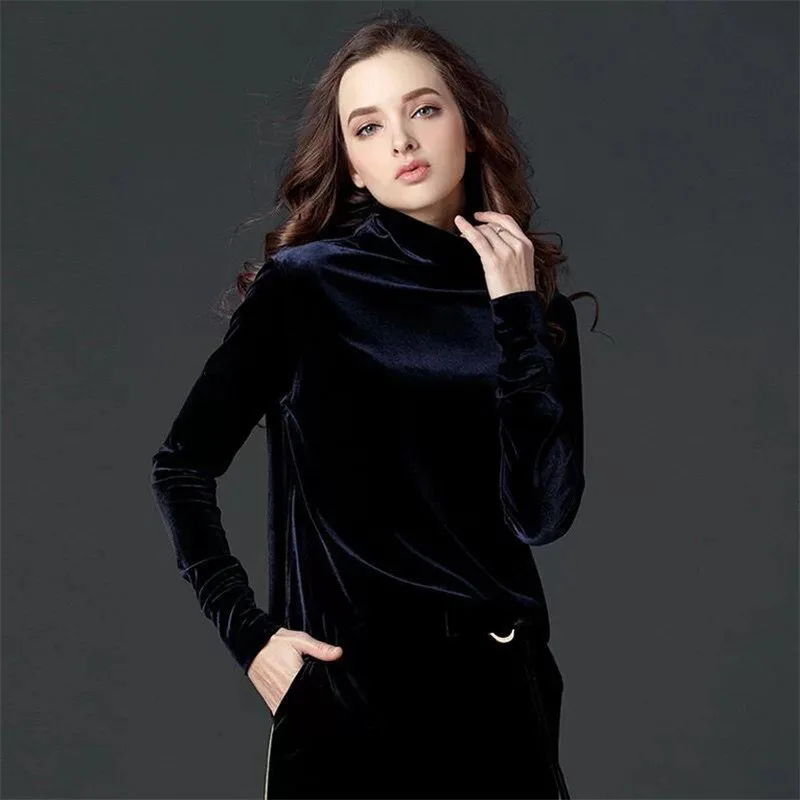 Осень 2022, женские велюровые рубашки с высоким воротником и длинным рукавом, черная синяя зимняя бархатная блузка, офисные женские топы, рубашки
