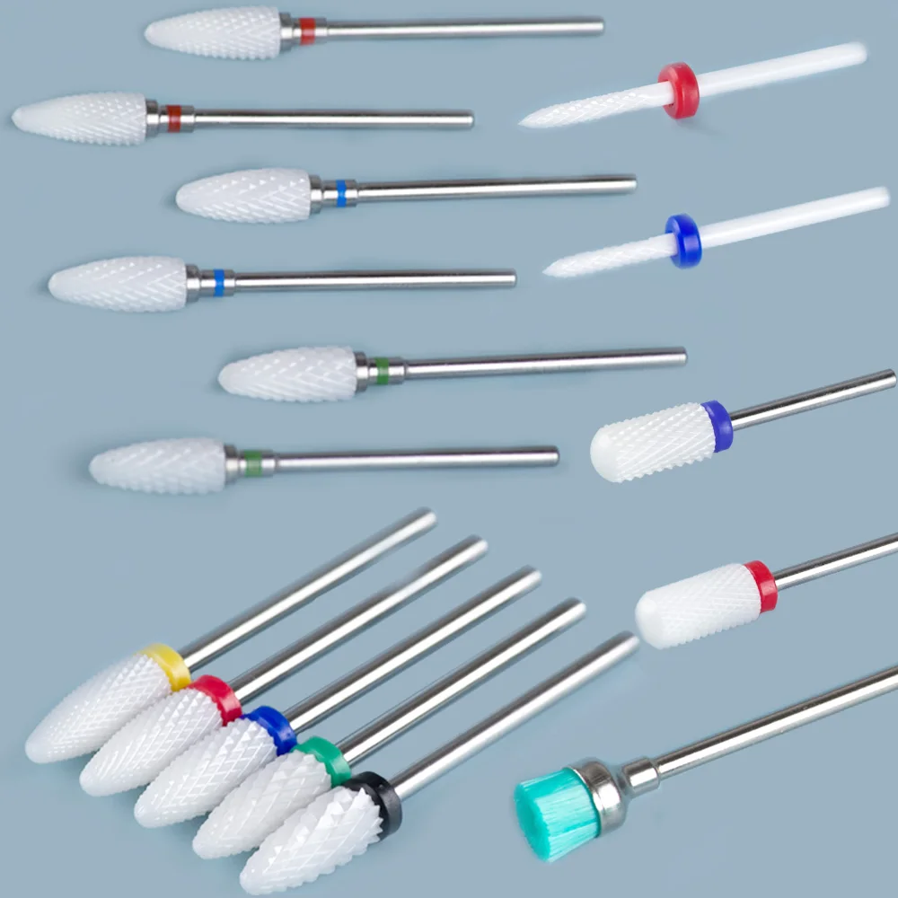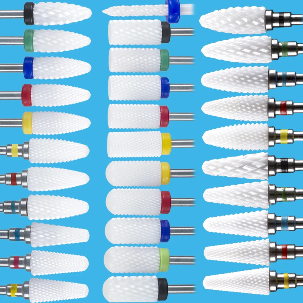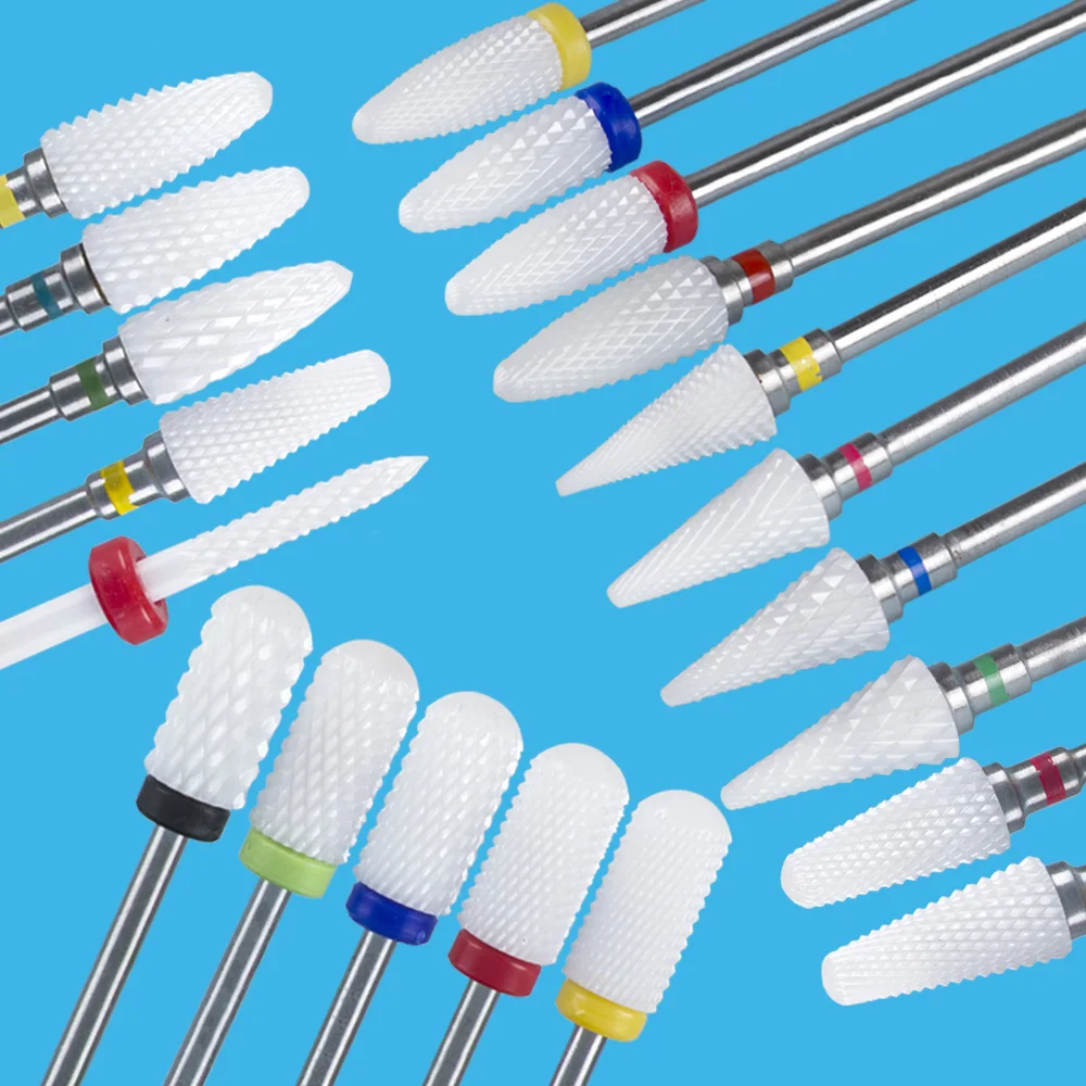 Керамические фрезы для маникюрного аппарата, набор фрез для ногтей, корундовые фрезы, фрезы для ногтей, педикюрных насадок, насадки, наждачный колпачок