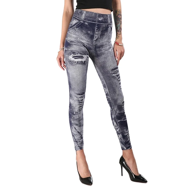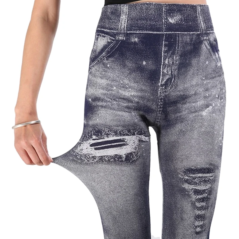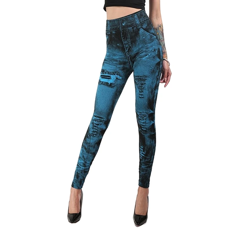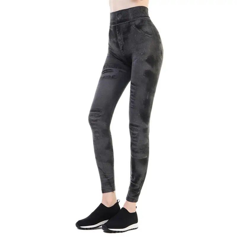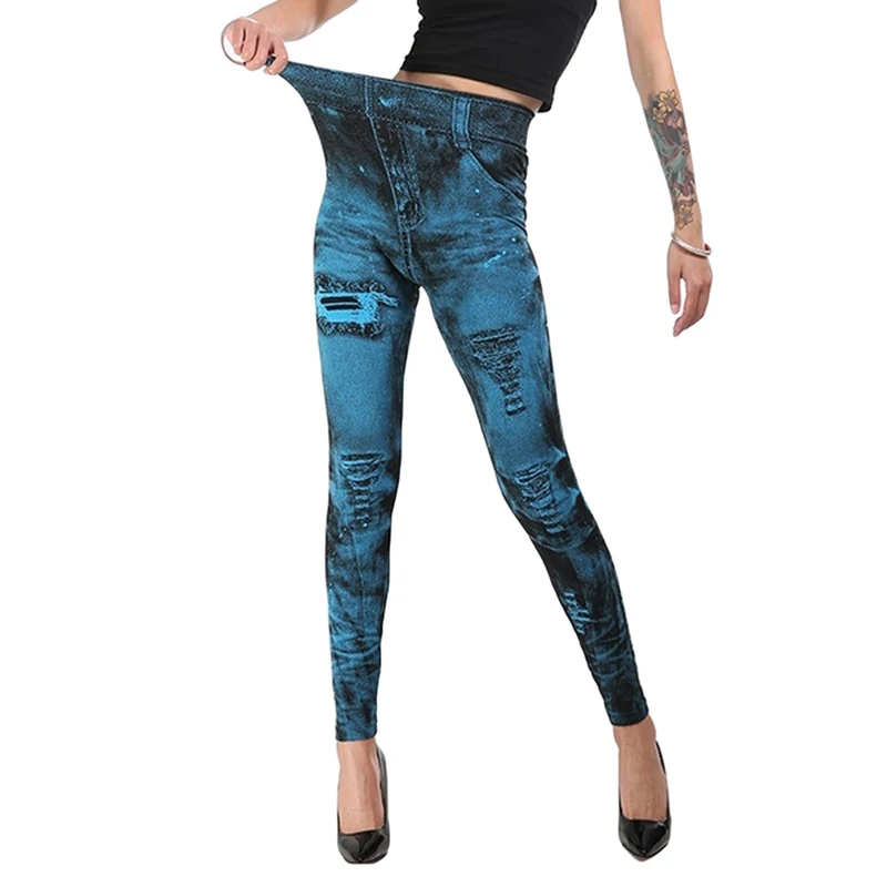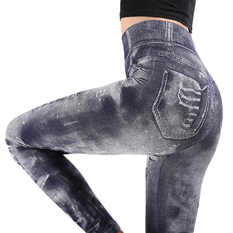 Женские облегающие джеггинсы с имитацией джинсовой ткани, классичес...