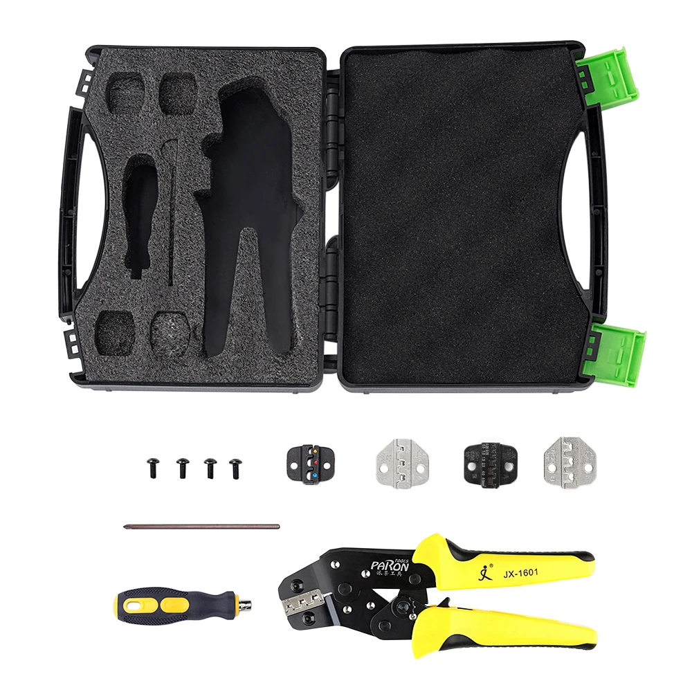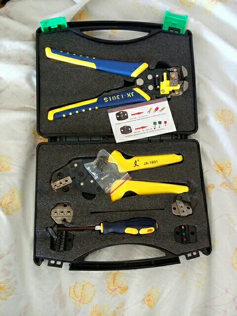 Эти профессиональные инструменты для обжима проводов с саморегулируемыми обжимными плоскогубцами и инструмент для зачистки проводов отличаются удобством, эффективностью и безвредностью для сердечников кабеля. Прост в использовании, просто удерживайте ручку и манипулируйте ею один раз, чтобы успешно плотно прижать провод и клеммные колодки.Особенности:С 5 сменными клеммами с различными диапазонами обжима.Профессиональный инструмент для обжима проводов с саморегулируемым храповым механизмом для удобства работы.Применимо к большинству неизолированных обжимных клемм и разъемов.Многофункциональный инструмент для зачистки проводов с улучшенным дизайном и более удобной ручкой для проводов от 24 до 10awg (0,2-мм ²).Благодаря отличному положению захвата ручки, легкая и компактная структура и дизайн ручки обеспечивают идеальный эффект обжима.Разработан в соответствии с человеческими факторами, он может сэкономить 50% энергии при обжиме.Пластиковый ящик для инструментов имеет водонепроницаемую поверхность и больше подходит для переноски и длительного хранения.Характеристики:Бренд: PARONМодель: JX-D5301SМатериал: Высокоуглеродистая сталь + сплавЦвет: желтый + черныйПодходящие клеммы и Диапазон обжима щипцов для проводов:JX 1601-01: гнезда с цветовым кодом + изолированные клеммы 24-14 AWG (0,25-мм ²)JX 1601-06: концевые клеммы шнура 24-10 AWG (0,25-мм ²)JX 1601-08: неизолированный открытый соединитель 26-16 AWG (0,14-мм²)JX 1601-10: неизолированный открытый Соединитель 28-18 AWG (0,1-мм²)JX 1601-2546: MC4 солнечные коннекторы 14-10 AWG (2,5-мм²)Диапазон зачистки автоматического устройства для зачистки проводов: 24-10 AWG (0,2-мм ²)Размер обжимного устройства: прибл. 190*80*20 мм/7,48*3,15 * 0.79inВес обжима проволоки: прибл. 348,5 г/12,29 унцийРазмер автоматического зачистки проводов: прибл. 210*108*28 мм/8,27*4,25 * 1.10inВес автоматического зачистки проводов: прибл. 316 г/11,15 унцийРазмер посылка: прибл. 23,5*18,5*4,5 см/9,25*7,28 * 1.77inВес посылка: прибл. 1010 г/35,63 унцийПримечание:Обратите внимание на направление анастомоза матриц и клемм при работе, иначе матрица будет лопнута.Посылка тация:1 * JX-1601 щипцы для проволоки1 * JX-1301S автоматический инструмент для зачистки проводов1 отвертка S24 * Запасные Плашки4 винта1 * ящик для инструментов