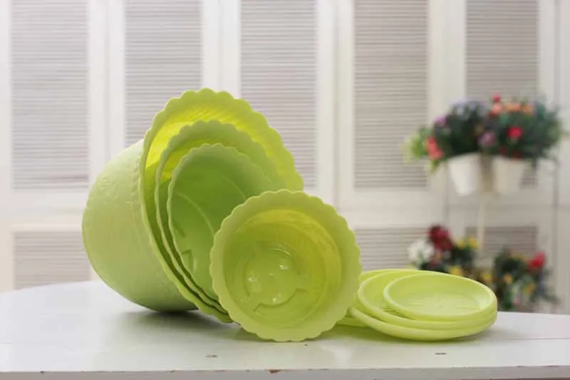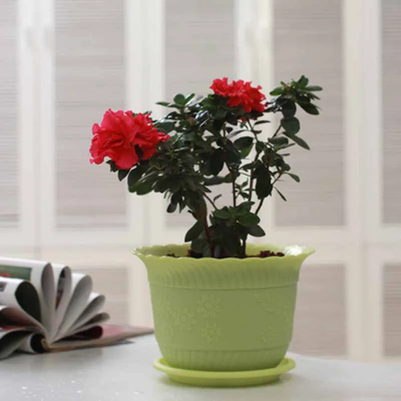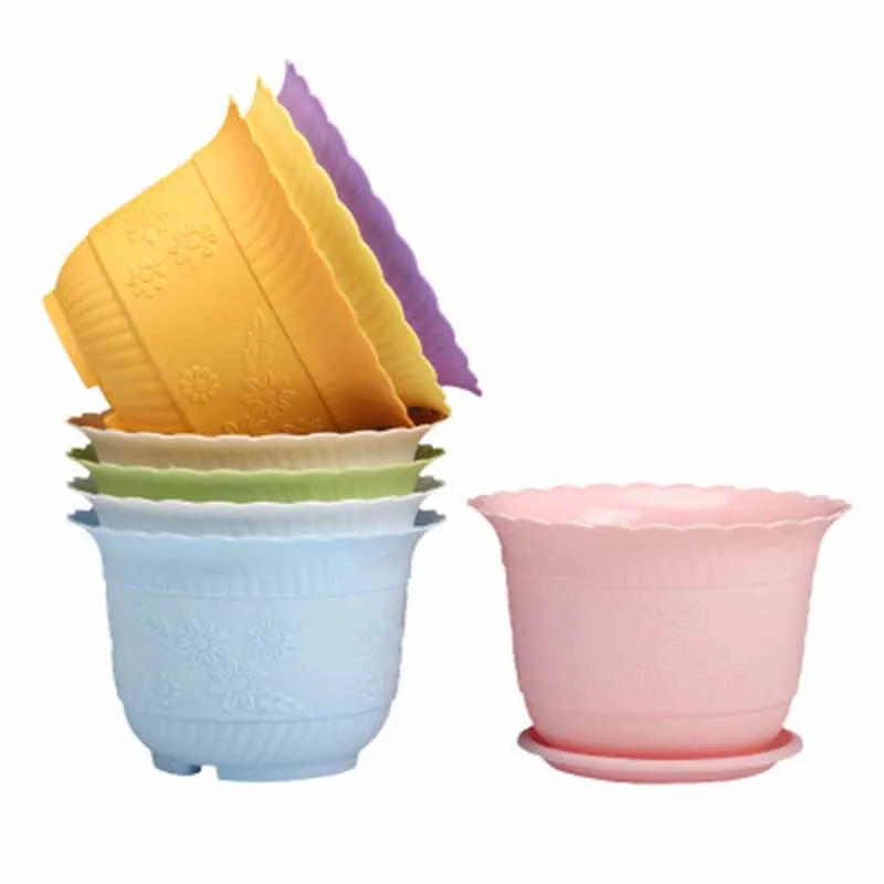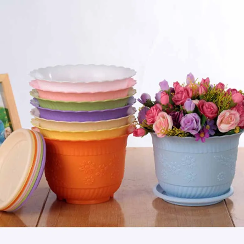 Цветной круглый пластиковый цветочный горшок для домашнего офиса, декоративный горшок для цветов, горшки с подносами, зеленое растение, искусственный домашний декор, 1 шт.