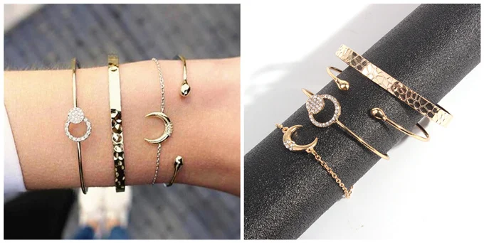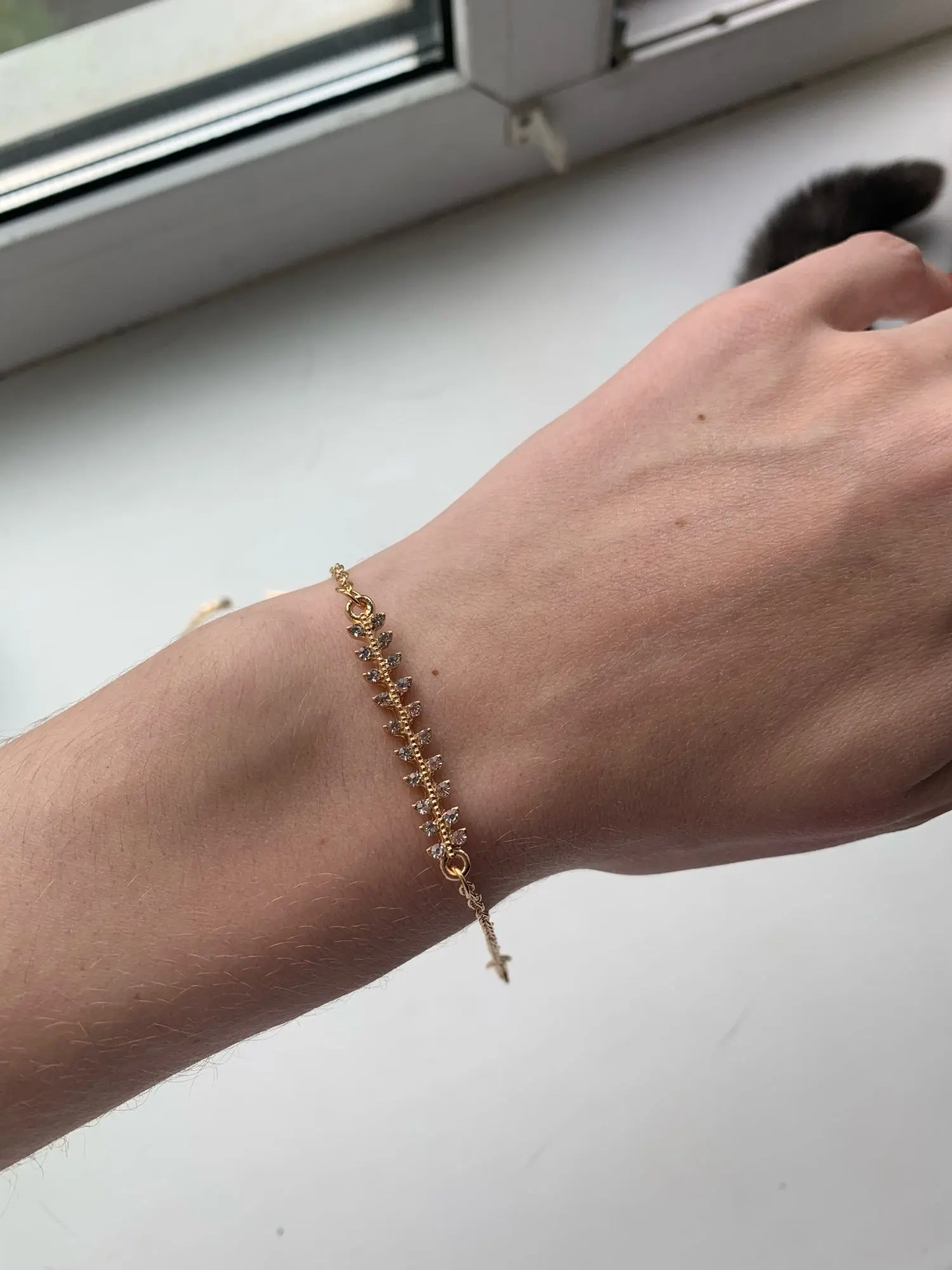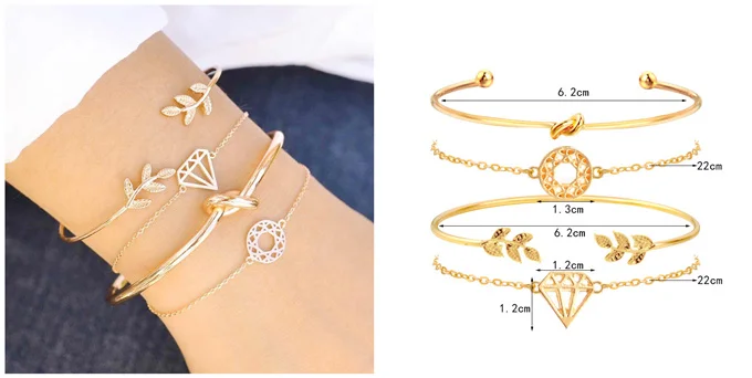 Посылка пришла за 3 недели. Браслеты-кольца разного диаметра: один больше, один меньше. Лепестки не такие как в описании, а меньше. На руке смотрятся не очень. На цепочке страза маленькая, не такая как на картинке у продавца. По факту она там даже особо не видна.