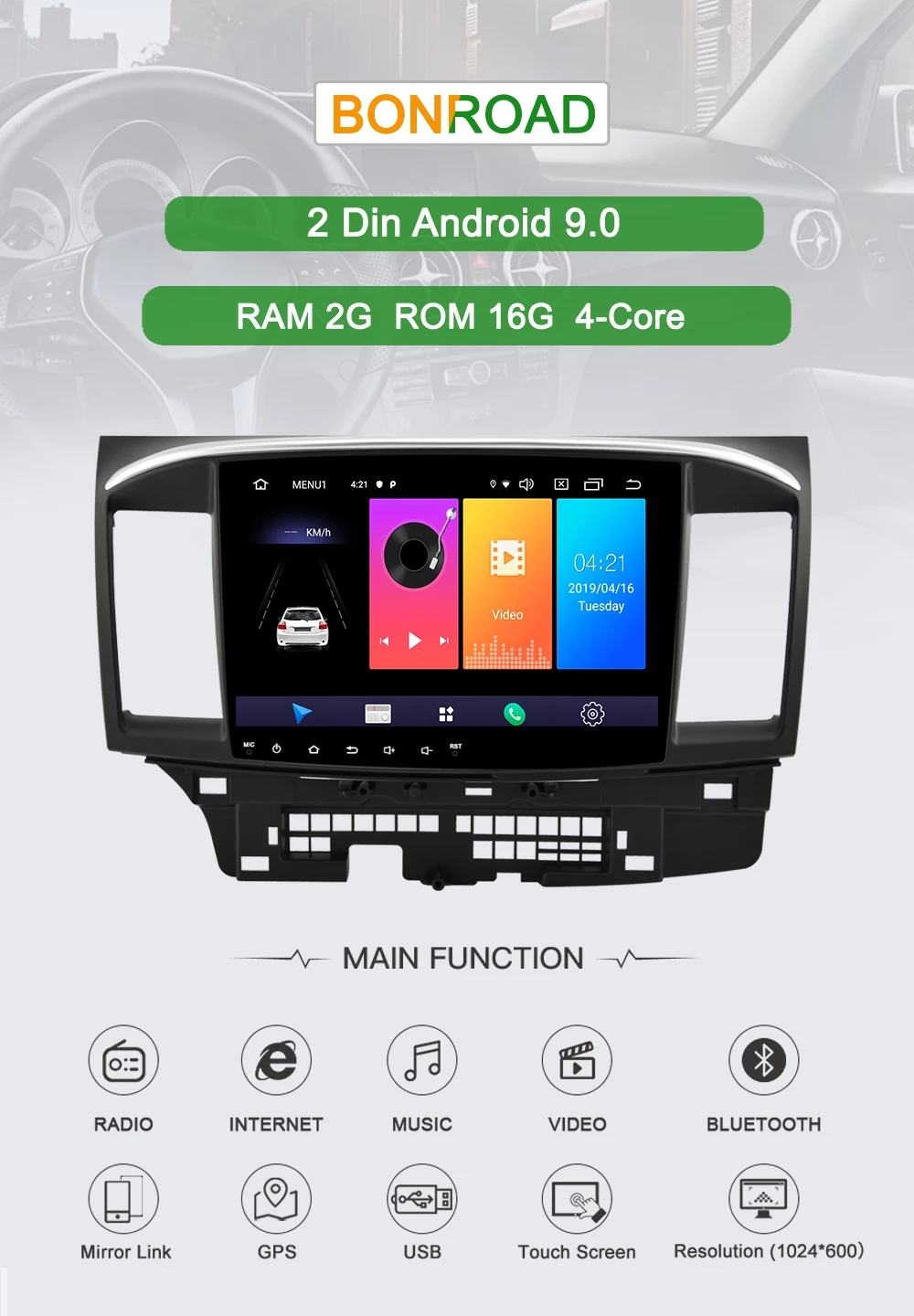 Bonroad Rom 64G 2 Din Android 10,0 Автомобильный мультимедийный плеер стерео для Mitsubishi Lancer X 2010-2015 автомобильное радио GPS навигация видео