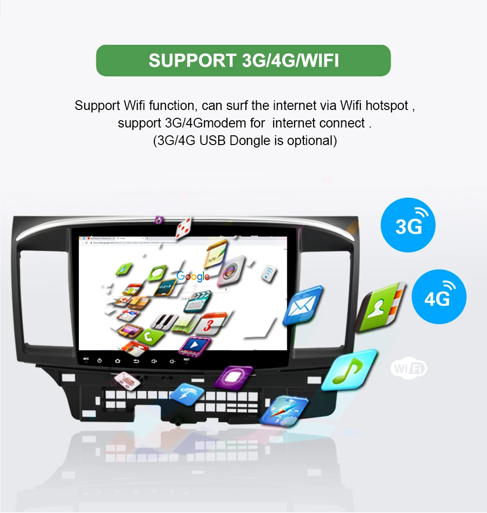 Поддержка 3G/4G (опционально), WIFI, Bluetooth, вход камеры заднего вида, gps-навигация, AUX;USB,