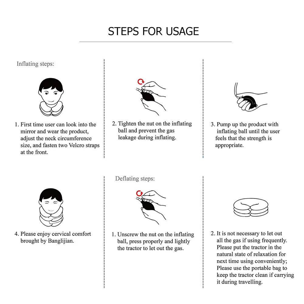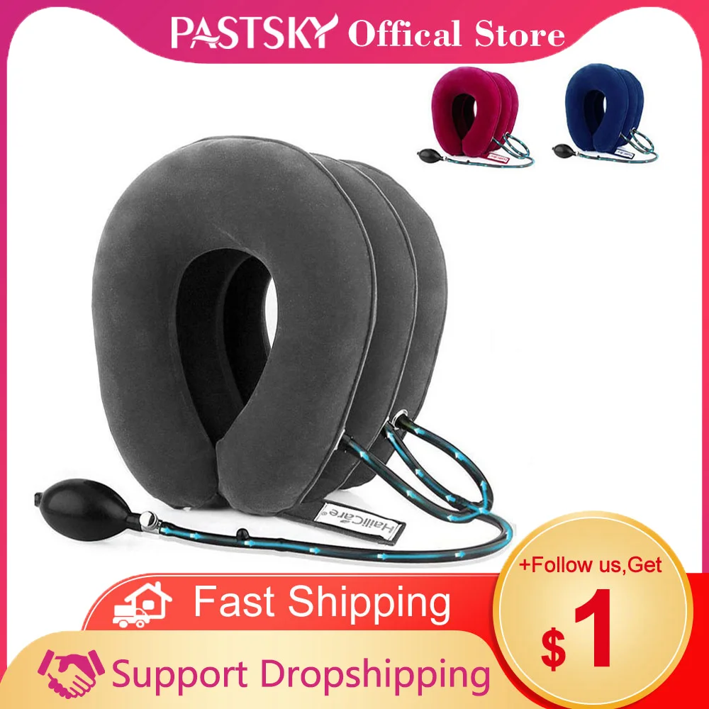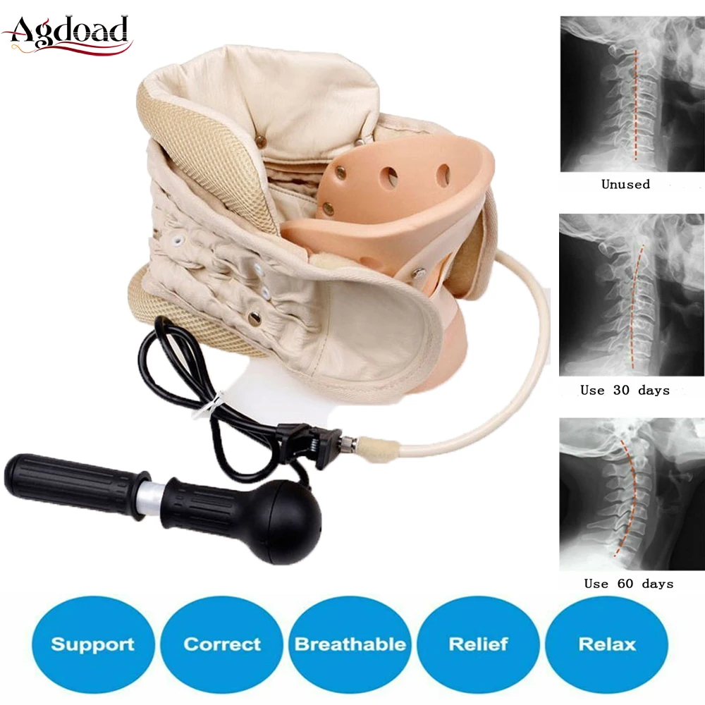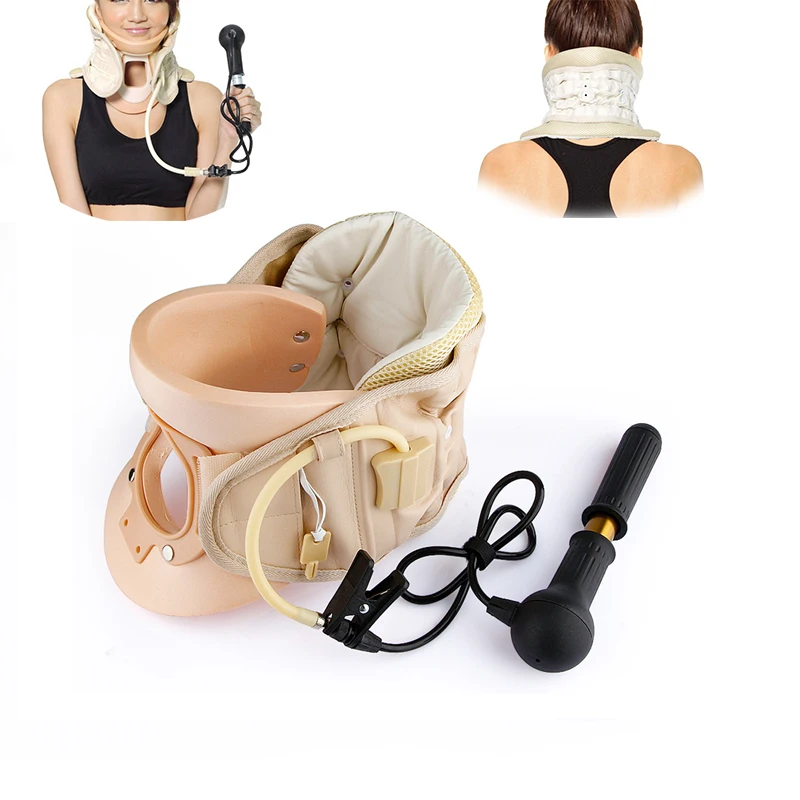 Надувной шейный ошейник, устройство для вытягивания шеи, поддержка позвонков, ортопедия, массаж, расслабляющий бандаж