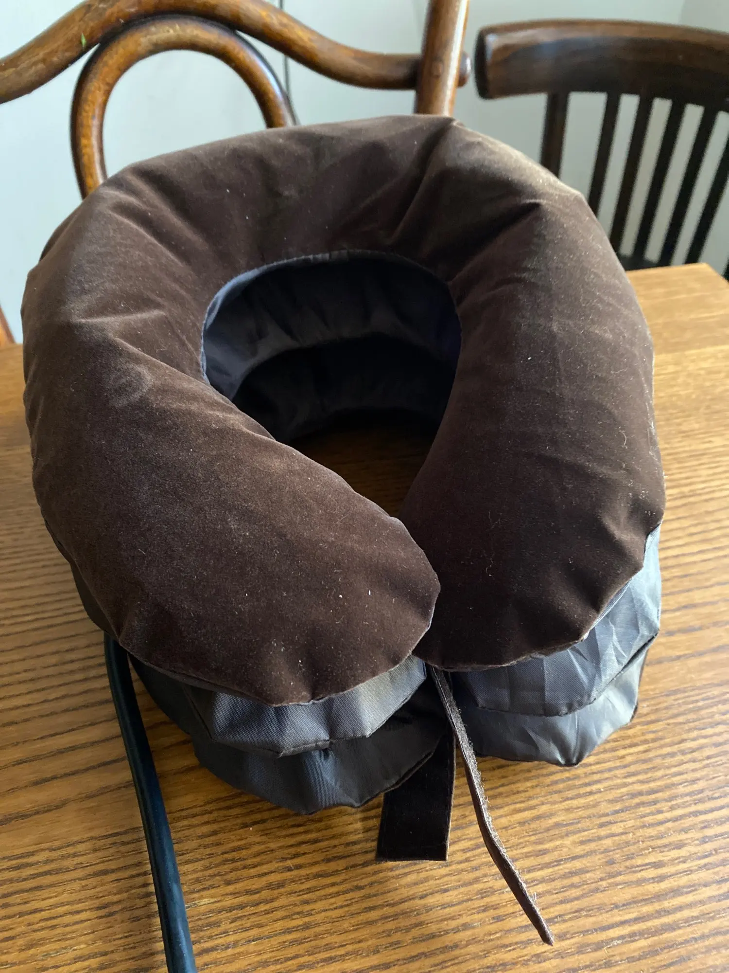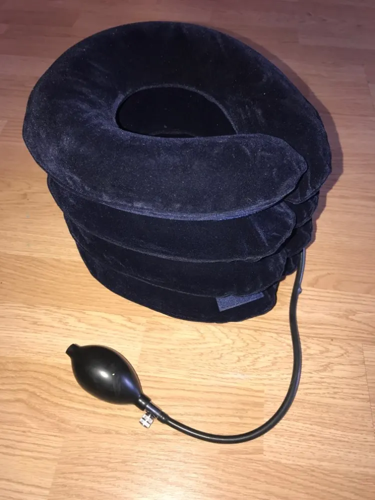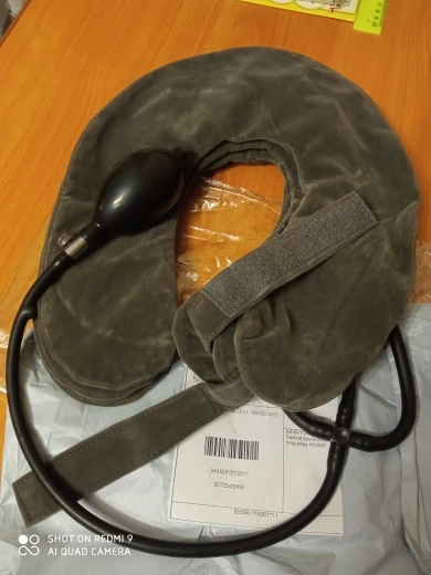 Доставили курьером домой за 9 дней, трек следился на сайте IML. Внешний вид, конструкция -- как в описании. Подключил "грушу", задавил шарик обратного клапана в "карман" -- накачивает нормально, но для начала ртом в трубку быстрее. Вроде не травит воздух, голову держит... как походная подушка в транспорт норм. Про долговременные медицинские эффекты добавлю позже, по мере опыта (ранее мастерил подвеску для головы). Внешний вид, канеш, в ней -- как у хомячка ;) Спасибо продавцу, всё как обещано!