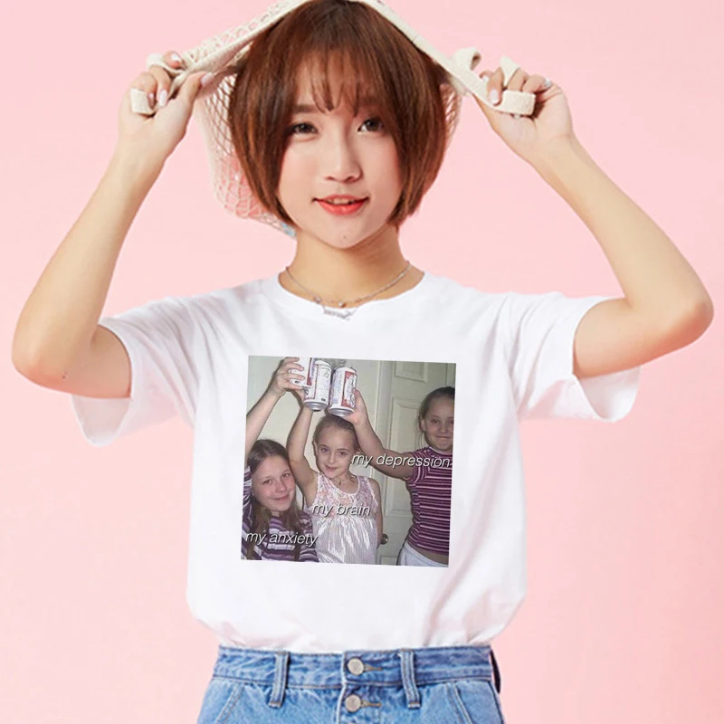 Женская футболка с надписью Моя депрессия мой мозг мой беспокойство, модная повседневная женская футболка в стиле Харадзюку, Новинка лета 2019
